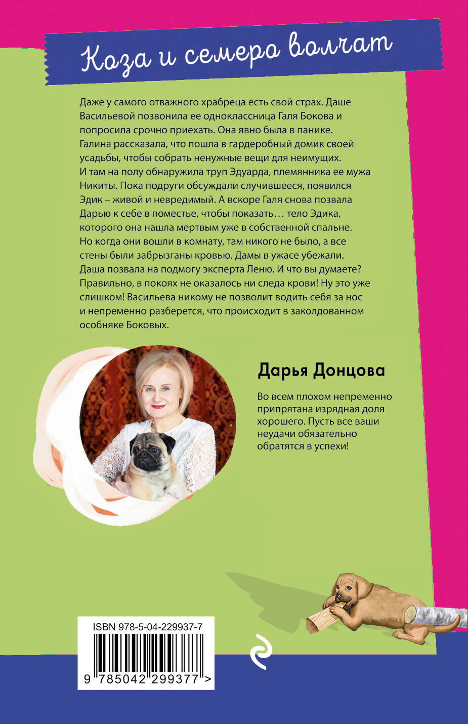 Даже у самого отважного храбреца есть свой страх. Даше Васильевой позвонила ее одноклассница Галя Бокова и попросила срочно приехать. Она явно была в панике. Галина рассказала, что пошла в гардеробный домик своей усадьбы, чтобы собрать ненужные вещи для неимущих. И там на полу обнаружила труп Эдуарда, племянника ее мужа Никиты. Пока подруги обсуждали случившееся, появился Эдик - живой и невредимый. А вскоре Галя снова позвала Дарью к себе в поместье, чтобы показать… тело Эдика, которого она нашла мертвым уже в собственной спальне. Но когда они вошли в комнату, там никого не было, а все стены были забрызганы кровью. Дамы в ужасе убежали. Даша позвала на подмогу эксперта Леню. И что вы думаете? Правильно, в покоях не оказалось ни следа крови! Ну это уже слишком! Васильева никому не позволит водить себя за нос и непременно разберется что происходит в заколдованном особняке Боковых. Дарья Донцова - самый популярный и востребованный автор в нашей стране, любимица миллионов читателей. В России продано более 200 миллионов экземпляров ее книг. Ее творчество наполняет сердца и души светом, оптимизмом, радостью, уверенностью в завтрашнем дне! «Донцова невероятная работяга! Я не знаю ни одного другого писателя, который столько работал бы. Я отношусь к ней с уважением, как к образцу писательского трудолюбия. Женщины нуждаются в психологической поддержке и получают ее от Донцовой. Я и сама в свое время прочла несколько романов Донцовой. Ее читают очень разные люди. И очень занятые бизнес-леди, чтобы на время выключить голову, и домохозяйки, у которых есть перерыв 15-20 минут между отвести-забрать детей». - Галина Юзефович, литературный критик
