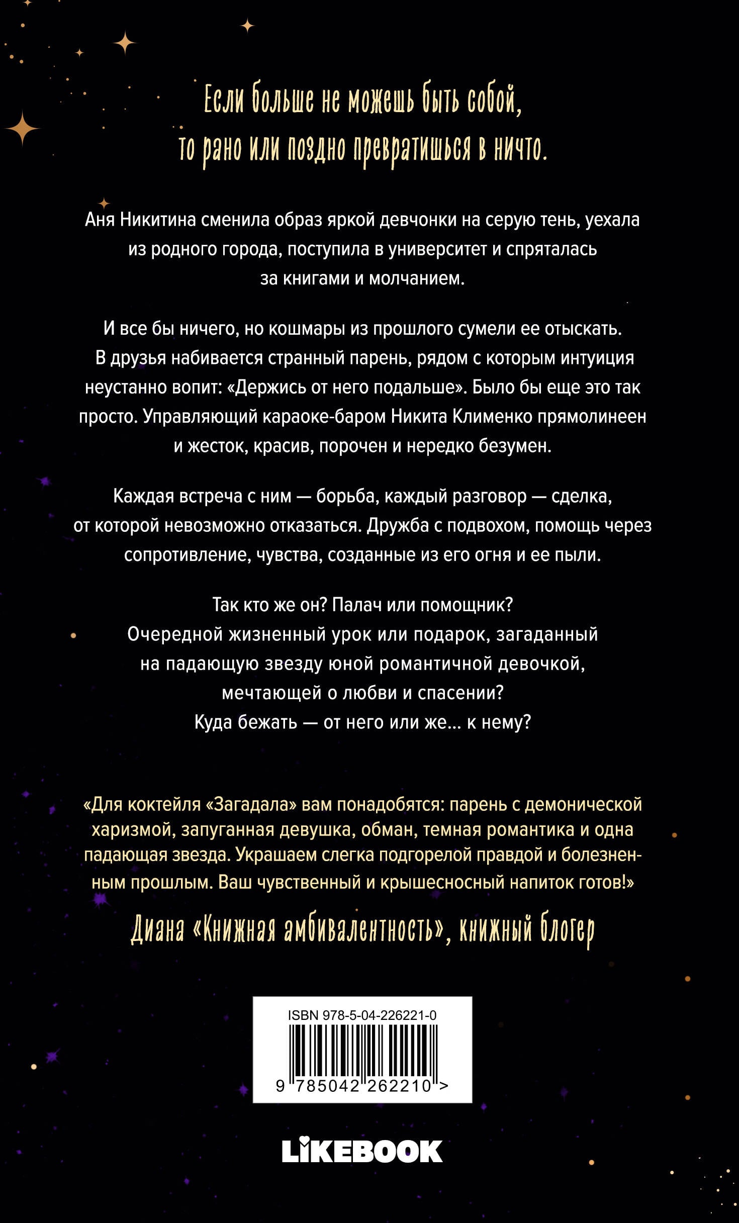 Если больше не можешь быть собой, то рано или поздно превратишься в ничто. Аня Никитина сменила образ яркой девчонки на серую тень, уехала из родного города, поступила в университет и спряталась за книгами и молчанием. И все бы ничего, но кошмары из прошлого сумели ее отыскать. В друзья набивается странный парень, рядом с которым интуиция неустанно вопит: "Держись от него подальше". Было бы еще это так просто. Управляющий караоке-бара Никита Клименко прямолинеен и жесток, красив, порочен и нередко безумен. Каждая встреча с ним - борьба, каждый разговор - сделка, от которой невозможно отказаться. Дружба с подвохом, помощь через сопротивление, чувства, созданные из его огня и ее пыли. Так кто же он? Палач или помощник? Очередной жизненный урок или подарок, загаданный на падающую звезду юной романтичной девочкой, мечтающей о любви и спасении? Куда бежать от него или же… к нему?| Издательство | ООО "Издательство "Эксмо" |