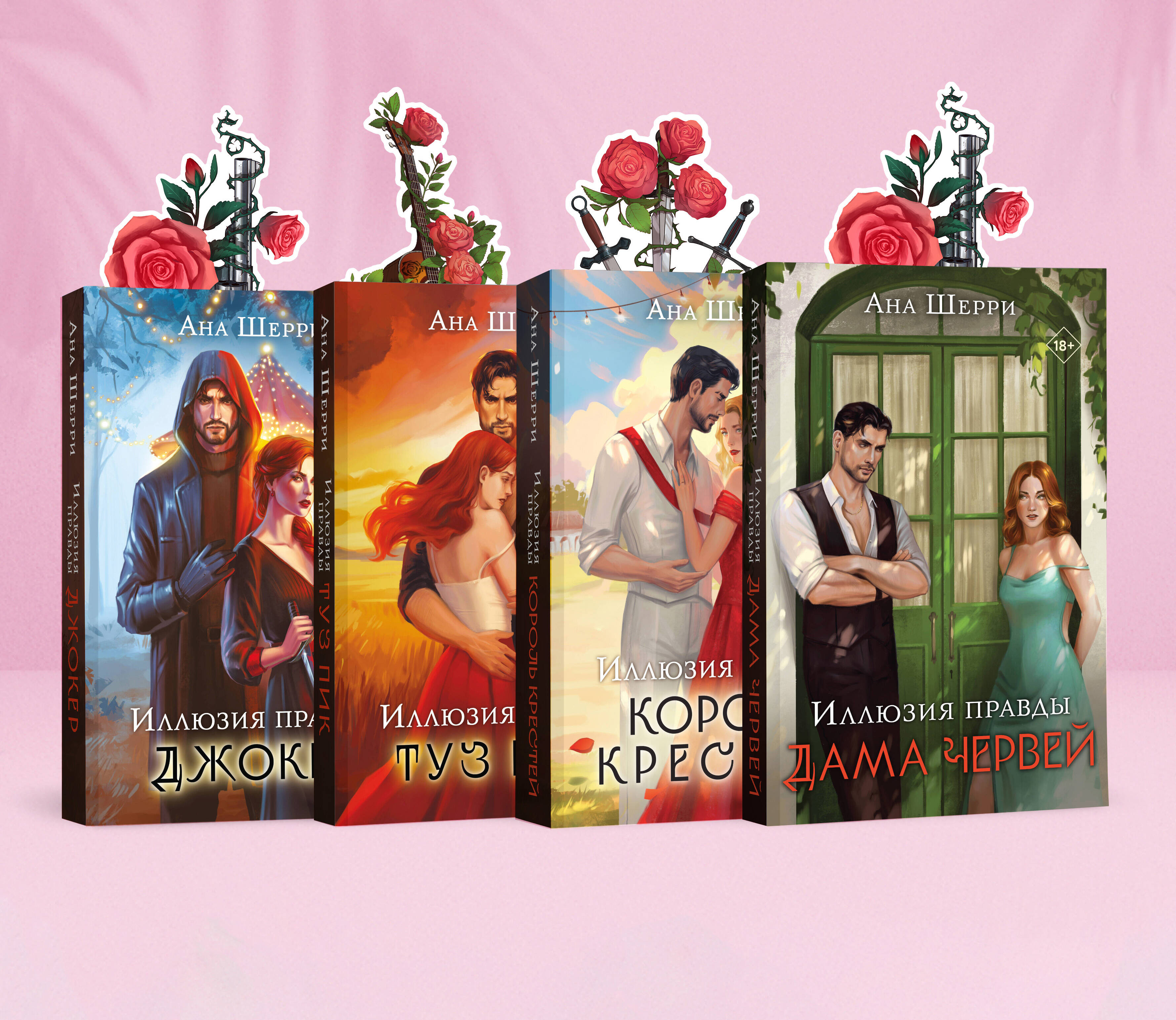 Комплект из 4-х книг Аны Шерри: Иллюзия правды. Дама червей + Иллюзия правды. Король крестей + Иллюзия правды. Туз пик + Иллюзия правды. Джокер + три подарочные открытки