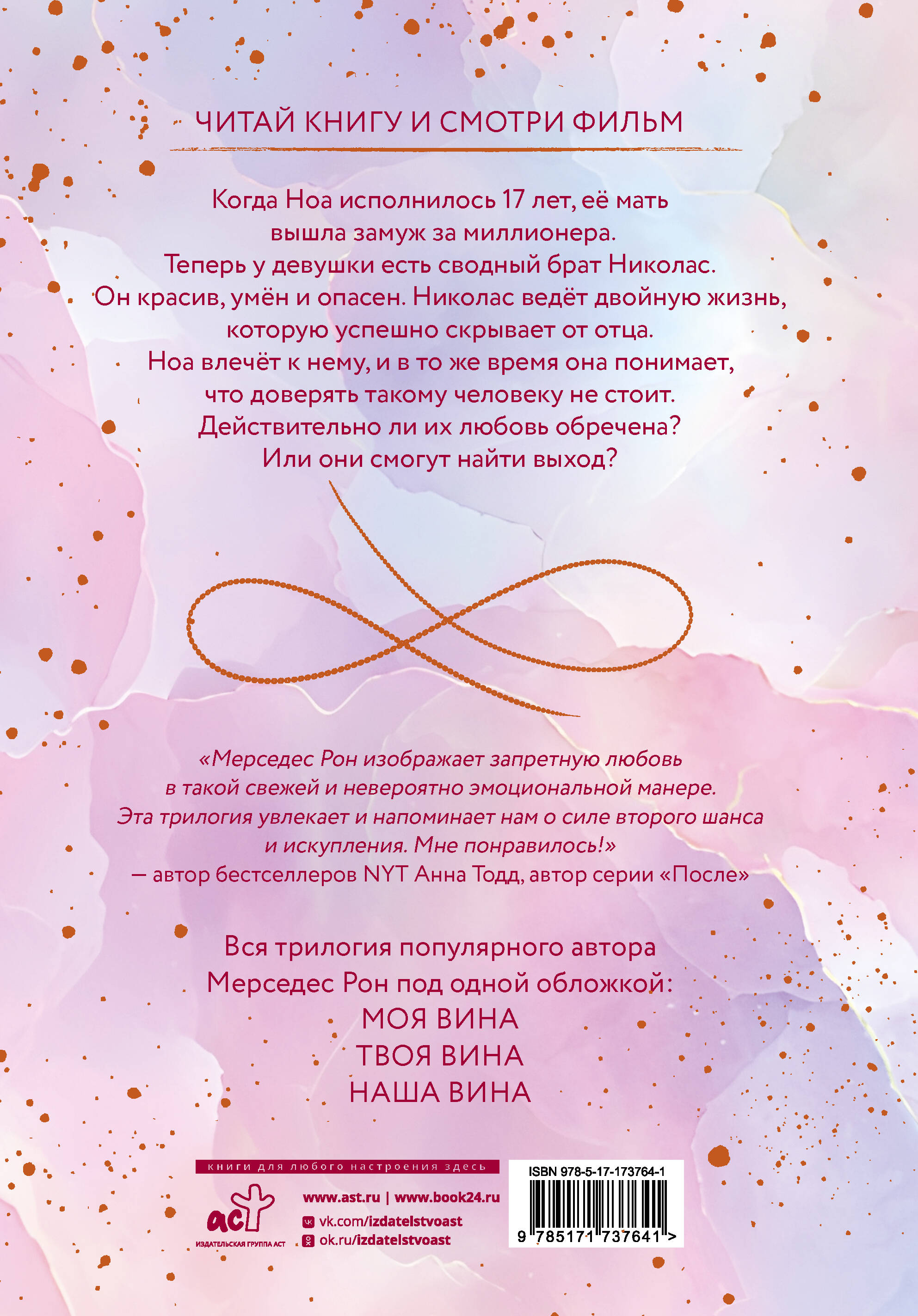 - Самая знаменитая история Мерседес Рон теперь в одном томе: трилогия «Моя вина», «Твоя вина» и «Наша вина». - Захватывающая история любви с сильным, решительным главным героем, нежными и трогательными сценами, накалом страстей и драмой. Внутри: запретная любовь, мафия и невероятные приключения. - Цикл обрел особую любовь и популярность благодаря ярким экранизациям. В октябре 2025 года вышла финальная часть кинотрилогии от Amazon Prime video. - Особое оформление омнибуса: увеличенный формат, бронзовая фольга на обложке и цветные форзацы. - «Мерседес Рон изображает запретную любовь в такой свежей и невероятно эмоциональной манере. Эта трилогия увлекает и напоминает нам о силе второго шанса и искупления. Мне понравилось!» - автор бестселлеров NYT Анна Тодд, автор серии «После».| Издательство | Издательство "АСТ" |