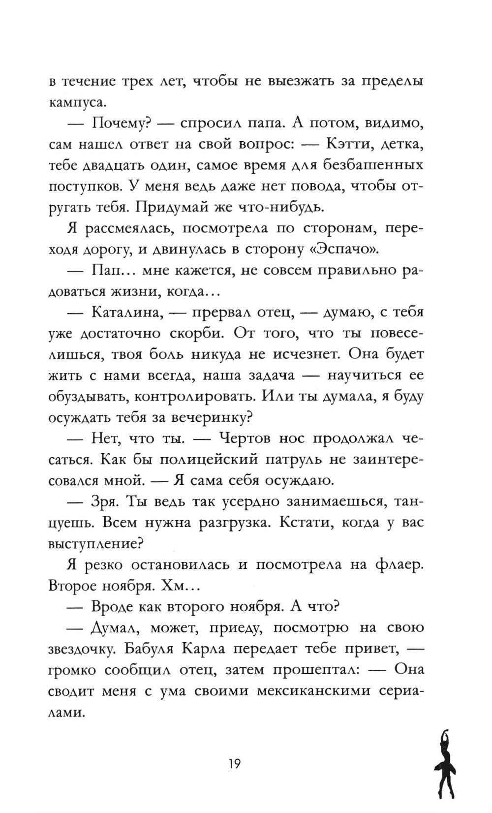 С детства Каталина мечтала быть королевой танцев. Растворяться в ритме уличной музыки и живых, неидеальных мотивов. Она оказалась в мире балета не по своей воле и чувствует себя в клетке, зависимая от ожиданий семьи и принстонской стипендии. Участие в кастинге на роль танцовщицы в клипе популярного рэп-исполнителя совсем не то, что нужно Каталине. Но она не может устоять перед звуками музыки и дерзким взглядом солиста Волкера. От ее движений становится горячо, и между Каталиной и Волкером летят искры. Но как быть, если Волкер совсем из другого мира? Что выберет Каталина - холодный мир классического балета или музыку, от которой поет душа? Карьеру или неидеального, но дерзкого мужчину, взгляд которого заставляет трепетать?| Издательство | Клевер-Медиа-Групп |