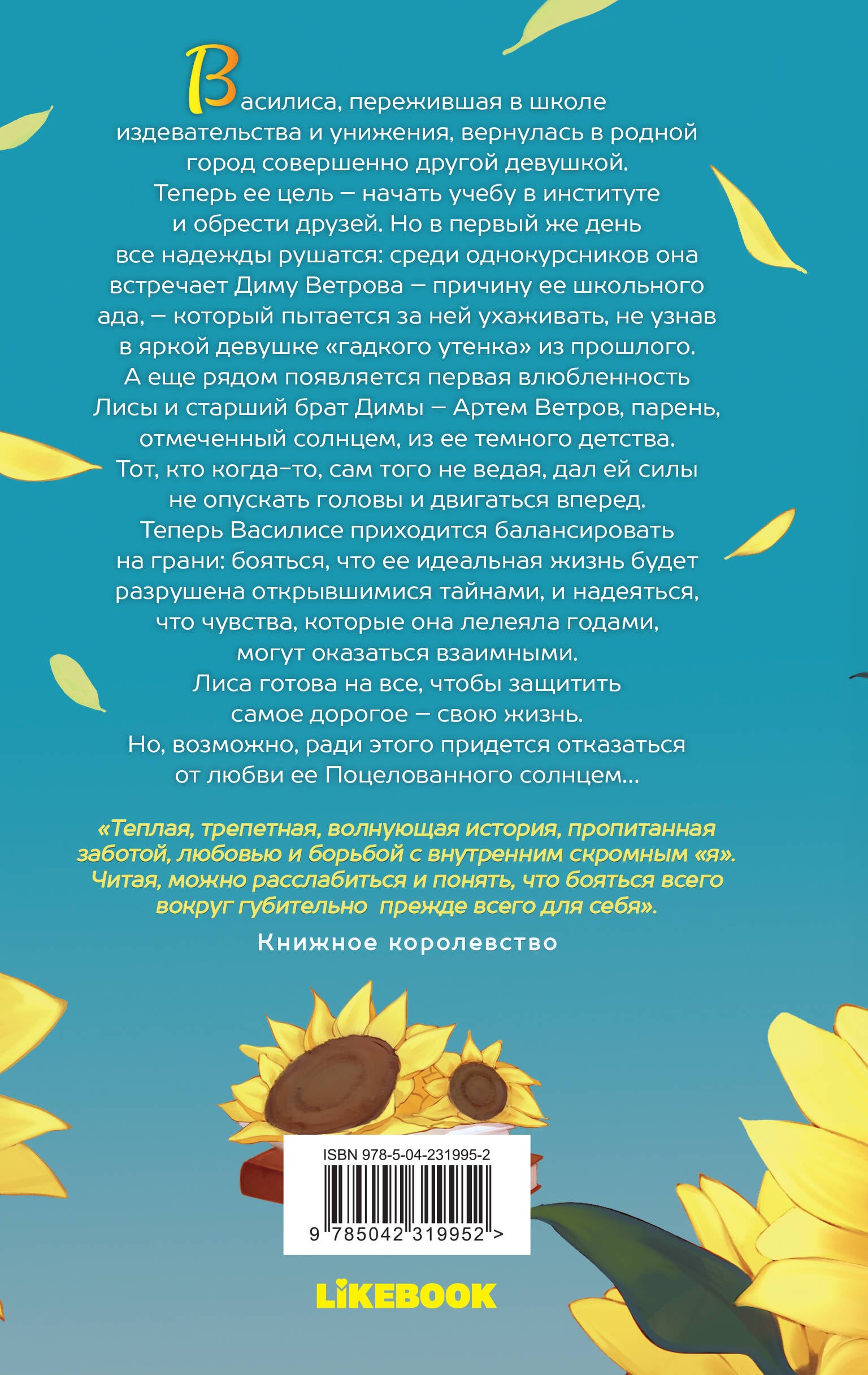 Трогательная история о том, как любовь помогает неуверенной в себе девушке выйти из зоны комфорта, открыть мир чувств и поверить в лучшее. Василиса, пережившая в школе издевательства и унижения, вернулась в родной город совершенно другой девушкой. Теперь ее цель - начать учебу в институте и обрести друзей. Но в первый же день все надежды рушатся: среди однокурсников она встречает Диму Ветрова - причину ее школьного ада, который пытается за ней ухаживать, не узнав в яркой девушке «гадкого утенка» из прошлого. А еще рядом появляется первая влюбленность Лисы и старший брат Димы - Артём Ветров, парень, отмеченный солнцем - из ее темного детства. Тот, кто когда-то, сам того не ведая, дал ей силы не опускать голову и двигаться вперед. Теперь Василисе приходится балансировать на грани: бояться, что ее идеальная жизнь будет разрушена открывшимися тайнами, и надеяться, что чувства, которые она лелеяла годами, могут оказаться взаимными. Лиса готова на все, чтобы защитить самое дорогое - свою жизнь. Но, возможно, ради этого придется отказаться от любви ее Поцелованного солнцем… _________________________________________________________ «Теплая, трепетная, волнующая история, пропитанная заботой, любовью и борьбой с внутренним скромным "я". Читая, можно расслабиться и понять, что бояться всего вокруг губительно прежде всего для себя». - Книжное королевство Для поклонниц историй Аси Лавринович, Зины Кузнецовой и Ники Сью. Иллюстрация на переплете от художника Voxalite.| Издательство | ООО "Издательство "Эксмо" |