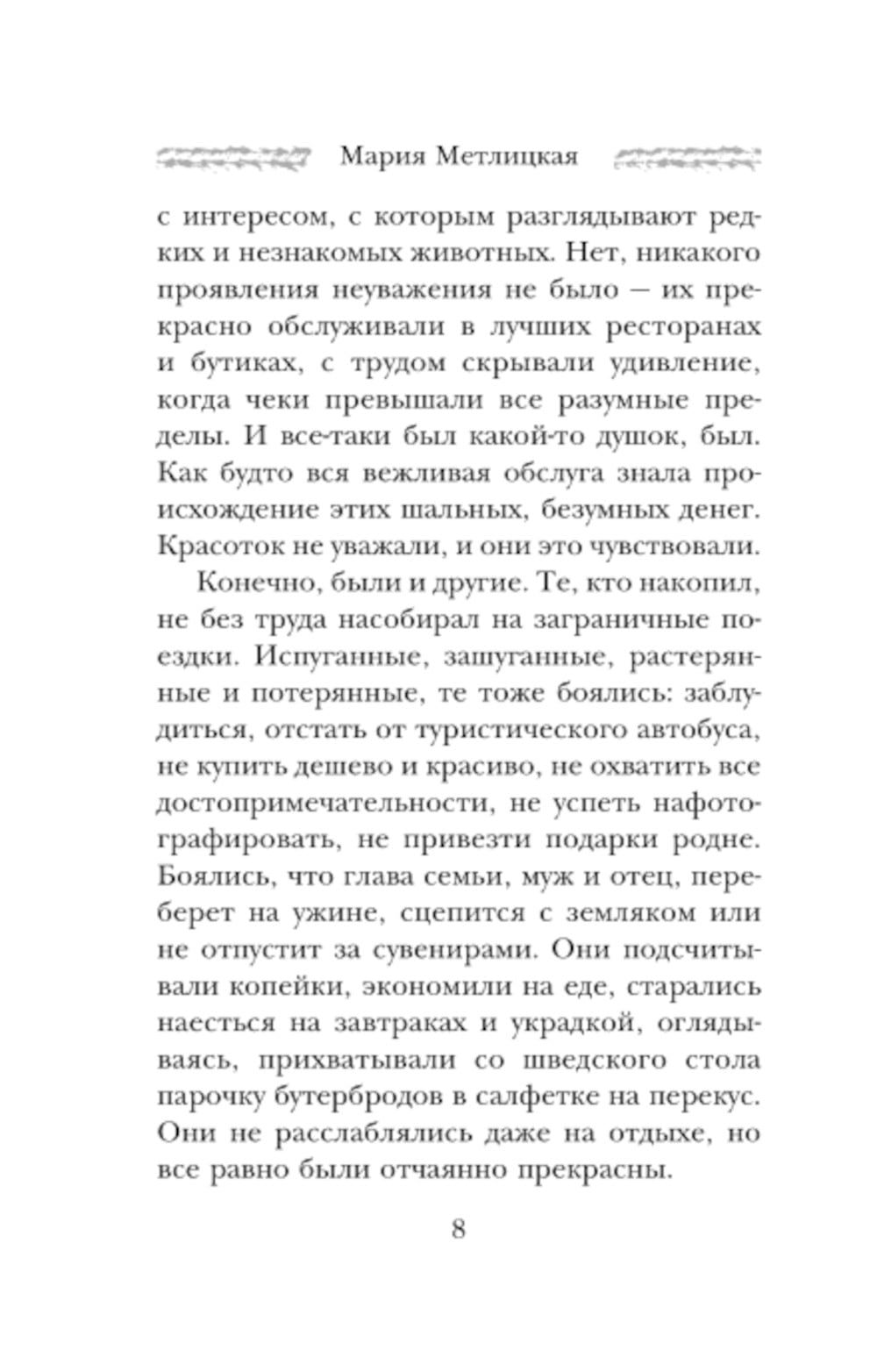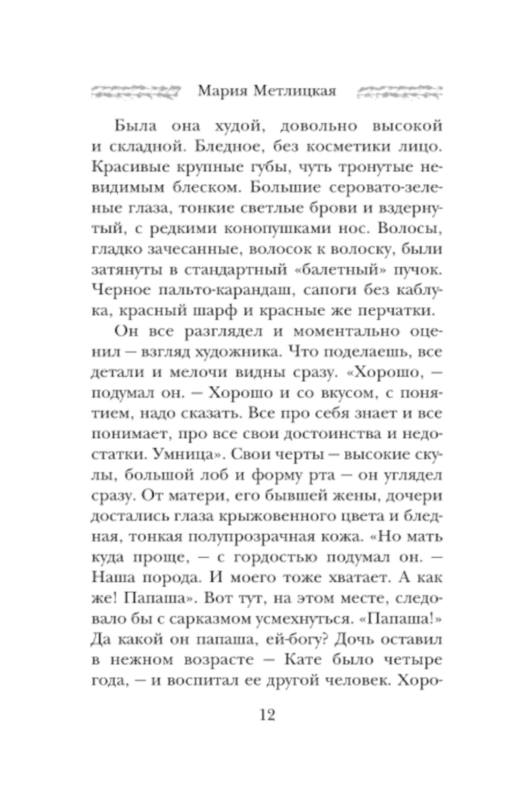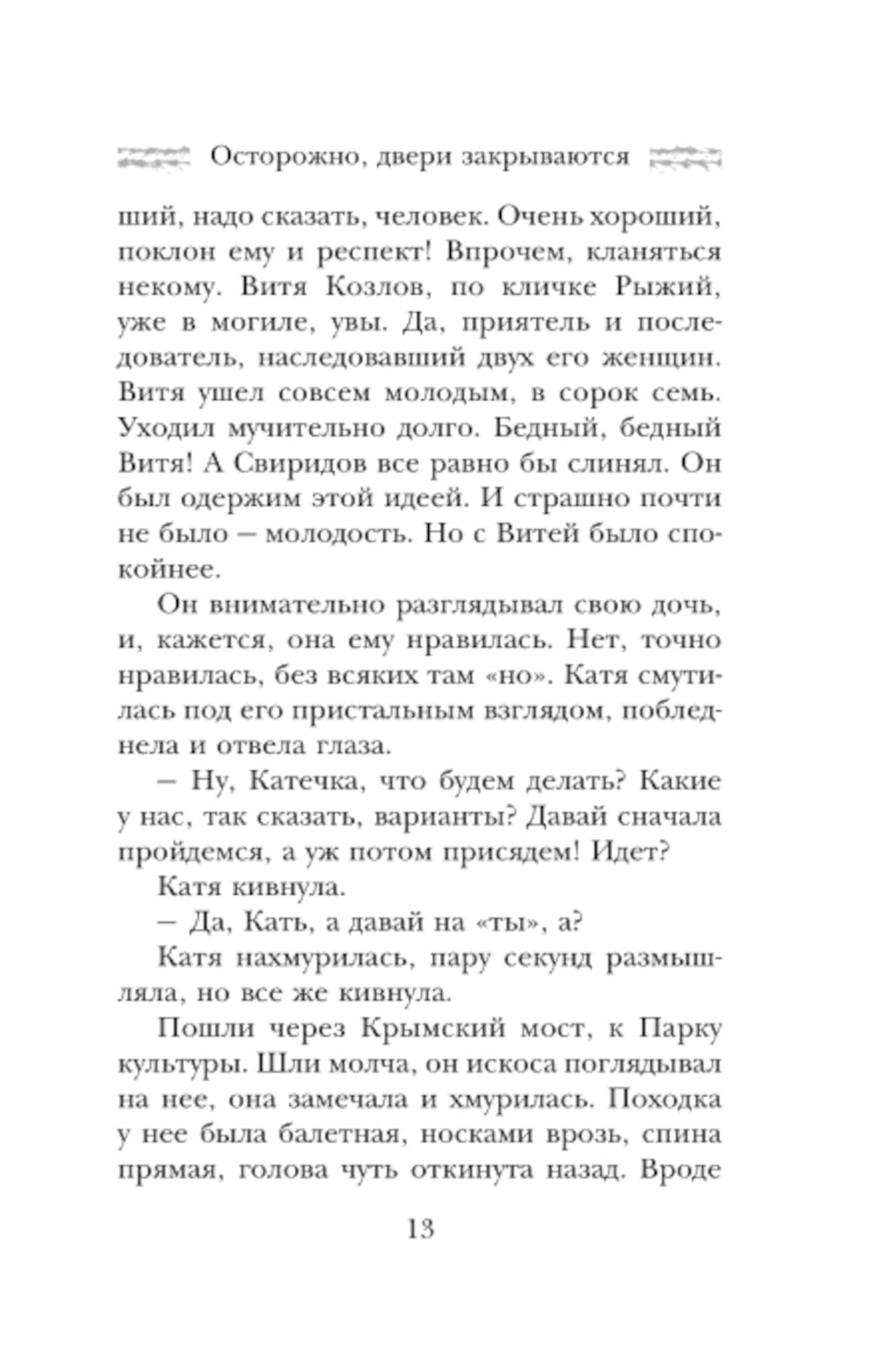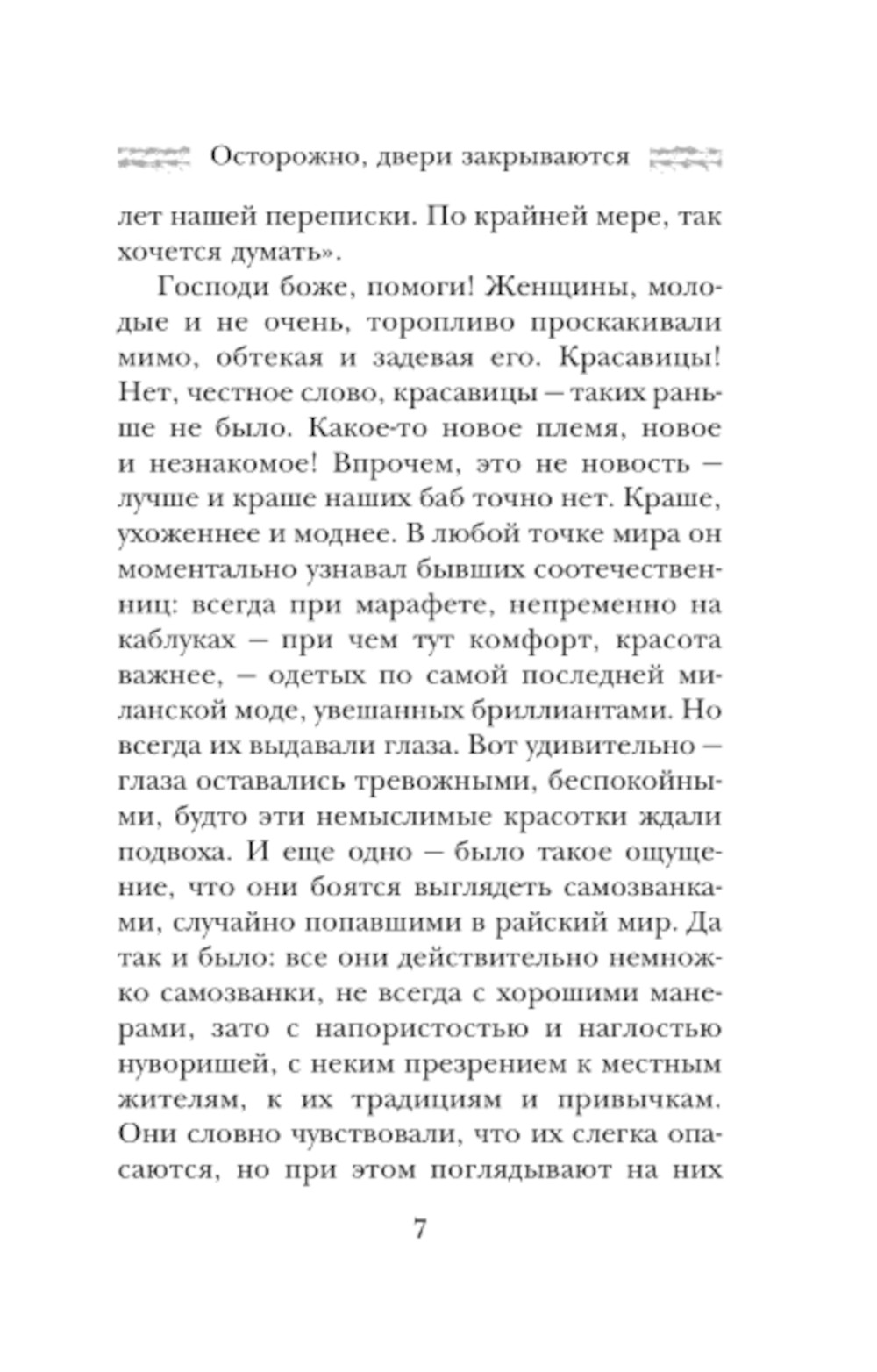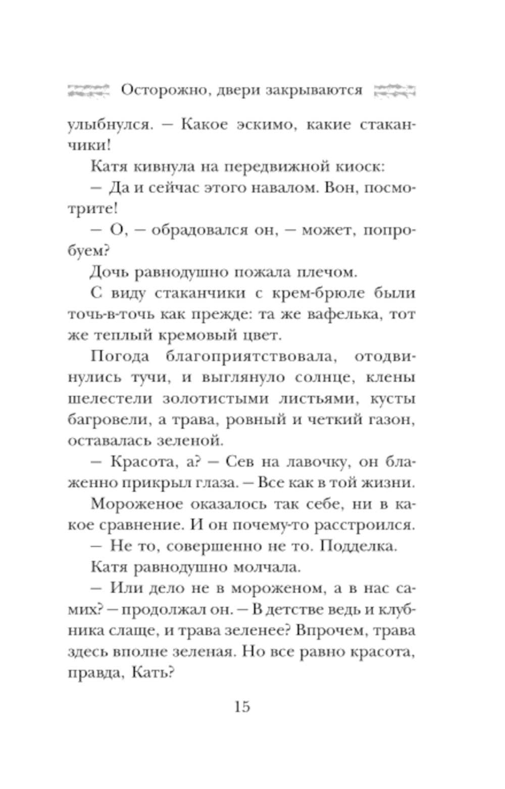 Новелла - литературная форма, за которую берутся немногие. Не так просто показать на нескольких страницах целую жизнь, вызывая у читателей яркие эмоции и привязанность к героям, но Мария Метлицкая неизменно справляется с этим вызовом. Ее короткие истории отличаются особой интонацией, живыми деталями и мягкой иронией, сплетенной со светлой грустью. Персонажи в них совершают не только хорошие и только плохие поступки - они оступаются и ошибаются, как все живые люди. "Осторожно, двери закрываются" - книга о поисках счастья и лучшей доли, пересмотре ценностей, в том числе семейных, о том, что нельзя изменить мир вокруг, не изменив своего к нему отношения.| Издательство | Эксмо |