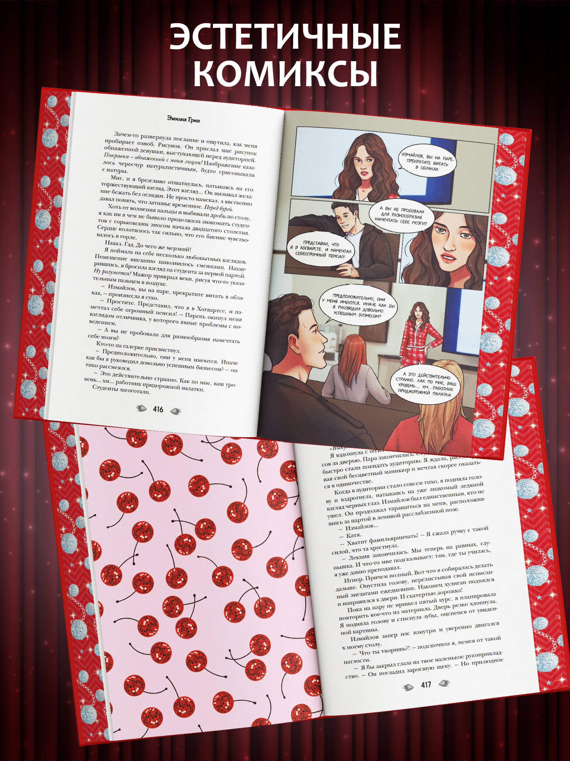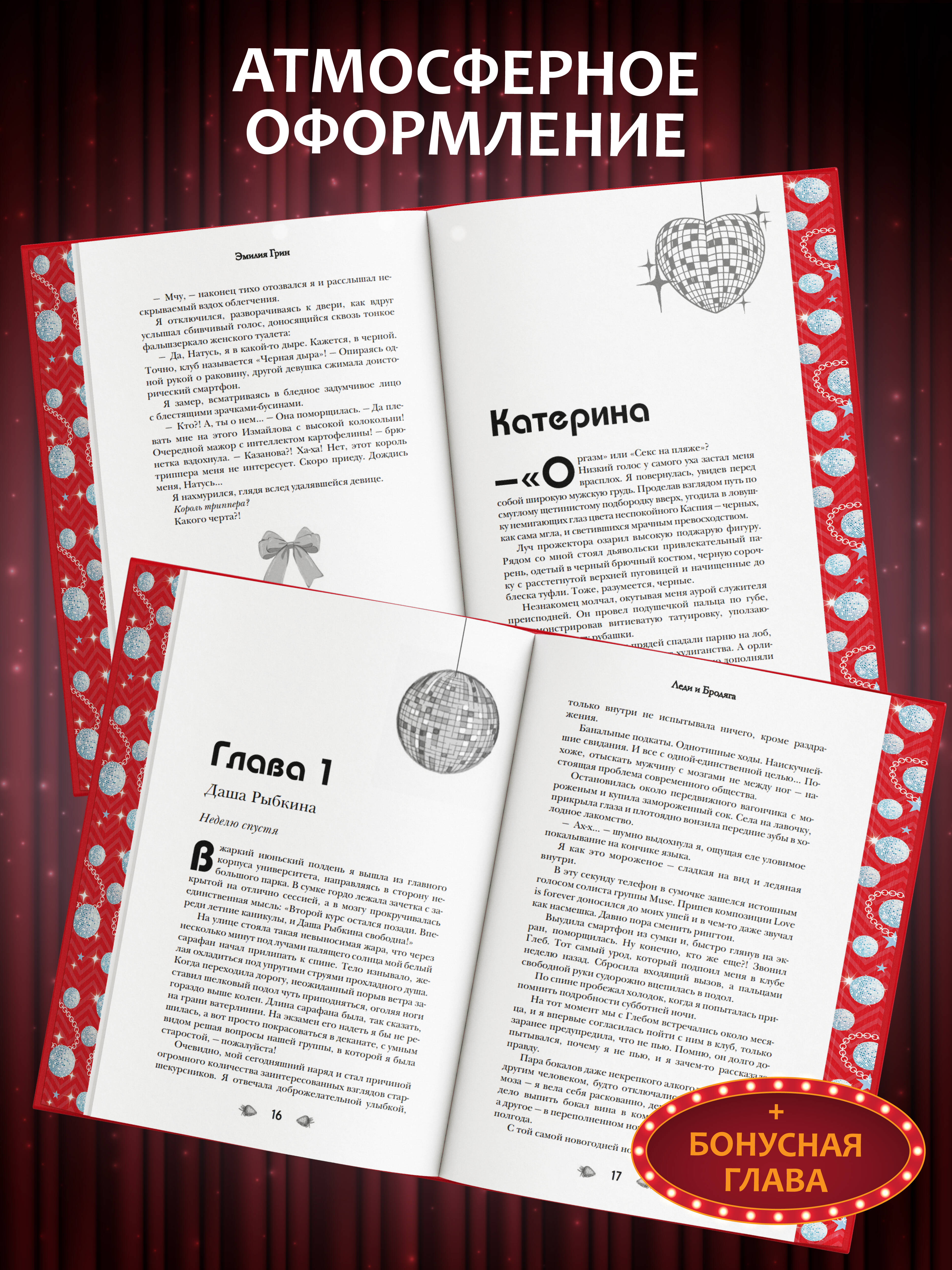 Новинка - коллекционное издание с двумя популярными романами Эмилии Грин под одной обложкой! Обе истории - о страсти, противостоянии и неожиданной близости, где герои балансируют на грани любви и ненависти. «Хулиган» - роман о взаимоотношениях преподавательницы и своенравного студента, забравшего ее личный дневник. Книга «Леди и Бродяга» расскажет о девушке, проникшейся чувствами к анониму, который… оказывается ее ненавистным боссом. Внутри пять сюжетных иллюстраций и два мини-комикса, выполненные на мелованной бумаге. Эксклюзив - бонусная глава, которая еще нигде не публиковалась! Чтобы вам было удобно читать и останавливаться на любимых моментах, в книге есть бархатная ленточка ляссе, которая позволит не потерять нужную страничку! Под двусторонней суперобложкой скрывается сюрприз: одна сторона - это эффектный арт с героями на вечеринке, а другая - словно панно из стилизованных полароидных снимков любимых персонажей, которое можно снять и повесить на стену. Форзацы украшают изображения героев с их анкетами и переписками. На переплете использовано покрытие софт-тач, а звезды выполнены фольгой, которая переливается на свету! Яркий обрез украшает узор из звезд и диско-шаров. Это издание - лучший подарок поклонникам чувственных историй! «Леди и Бродяга» Уже несколько недель я получаю таинственные сообщения с незнакомого номера. Он подписывается всегда одинаково - Бродяга. Безумно хочется отгадать, кто же скрыт под маской таинственного незнакомца, ведь мне кажется, он знает меня даже лучше, чем я сама… А пока я коротаю летние каникулы администратором тату-салона «Волчья пасть». И мой начальник - самоуверенный грубиян, привыкший получать желаемое по щелчку татуированных пальцев. Я бы с радостью уволилась, но, увы, поспорила с подругой, что продержусь на этом месте хотя бы месяц, и намерена выиграть спор. Только бы не проиграть в нем свое сердце… «Хулиган» Алихан Измайлов - типичный мажор, дерзкий парень с порочными мыслями и дьявольской улыбкой. Он владелец самого модного клуба в городе, куда я случайно зашла в последний день лета, еще не догадываясь, что эта встреча перевернет всю мою жизнь. Теперь он мой студент. И, кажется, единственная его цель - сделать мою работу невыносимой. Ситуация ухудшается, когда он крадет мой личный дневник, с целью заставить играть по своим правилам… Познакомьтесь с другими книгами автора: Дилогия «Шипы первой любви»: - «Прогульщик» Продолжение следует… Дилогия «На крыльях любви»: - «Ворон» - «Лебедь» Дилогия «На крыльях любви» (в подарочном оформлении).| Издательство | ООО "Издательство "Эксмо" |