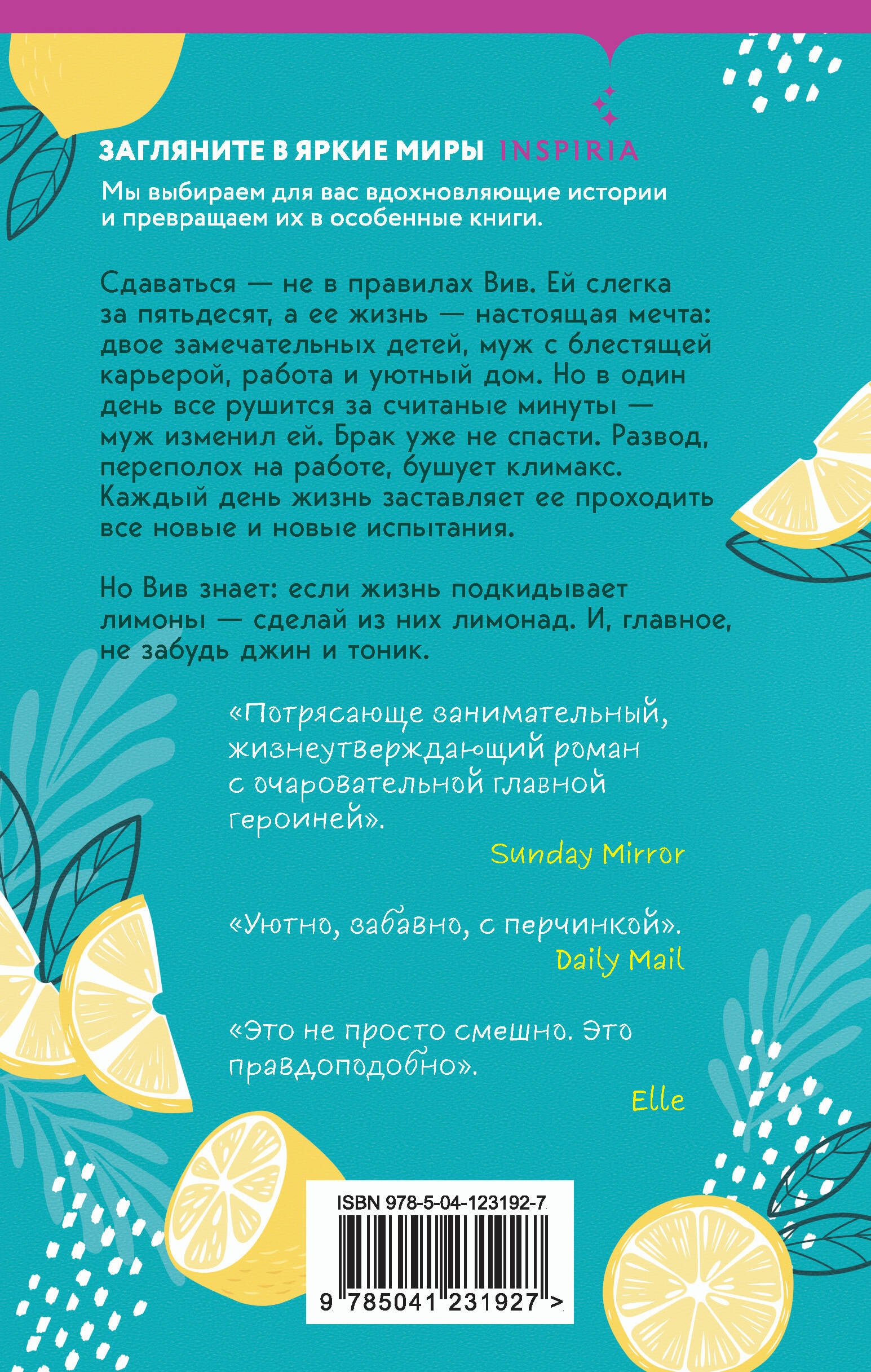 «Когда жизнь подкидывает тебе лимоны» - история, которая откликнется любой женщине. После 50-ти жизнь только начинается, несмотря на все трудности. Сдаваться - не в правилах Вив. Ей слегка за пятьдесят, а ее жизнь - настоящая мечта: двое замечательных детей, муж с блестящей карьерой, работа и уютный дом. Но в один день все рушится за считаные минуты - муж изменил ей. Брак уже не спасти. Развод, переполох на работе, бушует климакс. Каждый день жизнь заставляет ее проходить все новые и новые испытания. Но Вив знает: если жизнь подкидывает лимоны - сделай из них лимонад. И, главное, не забудь джин и тоник. «Голос современной женщины». - Marie Claire «Потрясающе занимательный, жизнеутверждающий роман с очаровательной главной героиней». - Sunday Mirror «Уютно, забавно, с перчинкой». - Daily Mail «Это не просто смешно. Это правдоподобно». - Elle| Издательство | ООО "Издательство "Эксмо" |