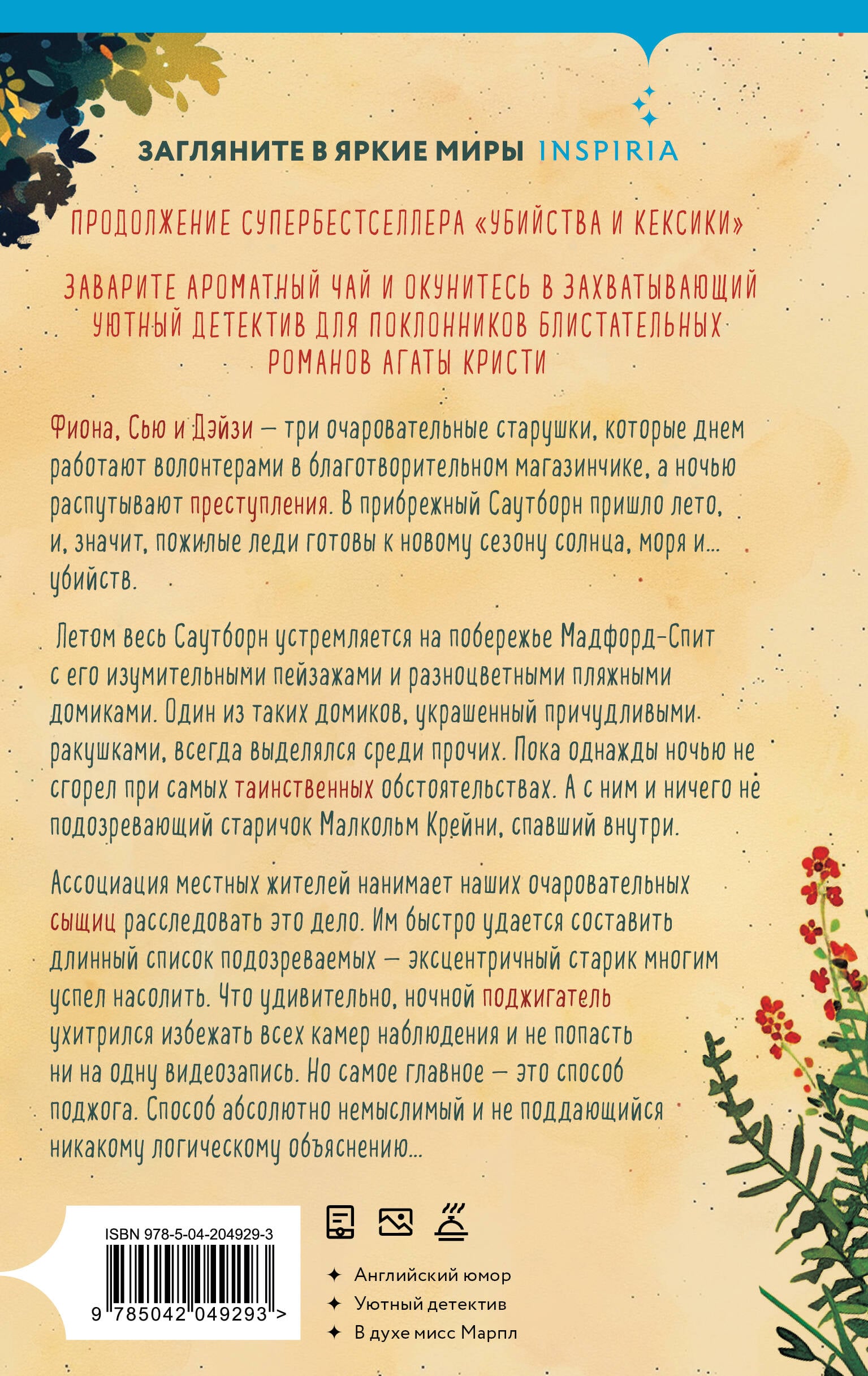 Убийства и кексики. Детективное агентство "Благотворительный магазин" (#1) Фиона, Сью и Дэйзи - три очаровательные дамы на пенсии, которые работают в небольшом благотворительном магазинчике. Однажды размеренный ритм их жизни с кофейными вторниками и прогулками по милым улочкам Саутборна нарушает жестокое убийство любимой клиентки Сары Браун. Не желая мириться с такой несправедливостью, они решают взять расследование в свои руки. Тем более, что появляется новое тело, а полицейские никак не могут сдвинуться с мертвой точки. Вооружившись своими познаниями в детективах и, конечно, чаем с отменными кексами три милые старушки приступают к активным действиям. Так и зарождается Детективное агентство "Благотворительный магазин". Убийства в пляжных домиках. Детективное агентство "Благотворительный магазин" (#2) Фиона, Сью и Дэйзи - три очаровательные старушки, которые днем работают волонтерами в благотворительном магазинчике, а ночью распутывают преступления. В прибрежный Саутборн пришло лето, и, значит, пожилые леди готовы к новому сезону солнца, моря и… убийств. Летом весь Саутборн устремляется на побережье Мадфорд-Спит с его изумительными пейзажами и разноцветными пляжными домиками. Один из таких домиков, украшенный причудливыми ракушками, всегда выделялся среди прочих. Пока однажды ночью не сгорел при самых таинственных обстоятельствах. А с ним и ничего не подозревающий старичок Малкольмом Крейни, спавший внутри. Ассоциация местных жителей нанимает наших очаровательным сыщиц расследовать это дело. Им быстро удается составить длинный список подозреваемых - эксцентричный старик многим успел насолить. Что удивительно, ночной поджигатель ухитрился избежать всех камер наблюдения и не попасть ни на одну видеозапись. Но самое главное - это способ поджога. Способ абсолютно немыслимый и не поддающийся никакому логическому объяснению… Убийства на выставке собак. Детективное агентство "Благотворительный магазин" (#3) В Крайчестере началась ежегодная выставка собак. И, конечно, дамы из Благотворительного магазинчика не пропустят такое знаменательное событие. Они смогут собрать пожертвования и насладиться шоу. Тем более, что в программе множество разнообразных конкурсов, от "Самых милых глазок" до "Лучшей собаки на выставке". Но после драматичного конкурса по ловле печенья случается скандал - победителя обвиняют в мошенничестве, а затем и вовсе одна из женщин падает замертво… Все решают, что это был обычный сердечный приступ, но Фиона, Сью и Дэйзи получаются наводку от инспектора Финчер - произошло настоящее убийство. Кто-то в толпе незаметно сделал Сильвии Стедман смертельный укол. Женщина была владелицей пуделя-чемпиона, и у нее наверняка имелось много завистливых соперников. Нашим неунывающим сыщицам придется засучить рукава, чтобы поймать нового убийцу, и восстановить спокойствие в их любимом городке. К тому же, у них появилась новая помощница, с которой дела пойдут гораздо быстрее. Зверские убийства в Тенистой Лощине (Тайны Тенистой Лощины #1) Добро пожаловать в Тенистую Лощину - милый городок, затерявшийся среди бескрайних лесов и живописных гор. Здесь вы можете насладиться ароматнейшим кофе и вкуснейшими кексами в кофейне "За кружечкой у Джо" или наведаться в уютный книжный магазинчик "Жребий брошен". Долгие годы в этом тихо