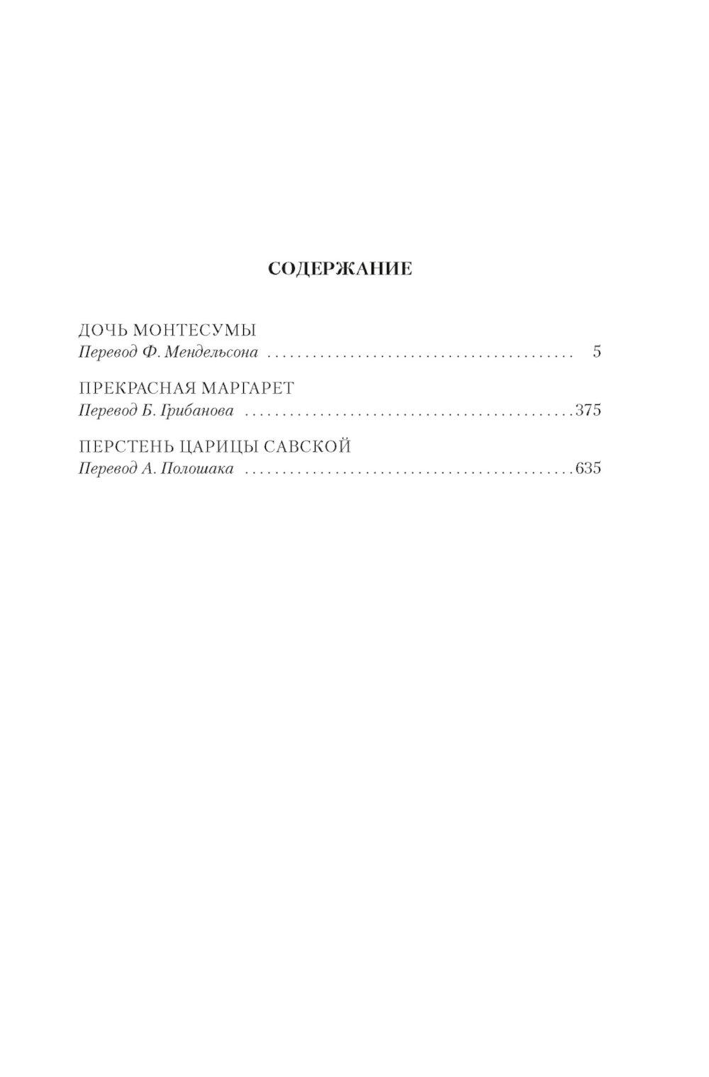 Аннотация: Дочь Монтесумы. Прекрасная Маргарет. Перстень царицы Савской: романы