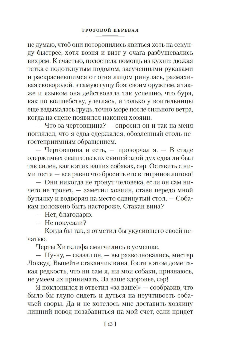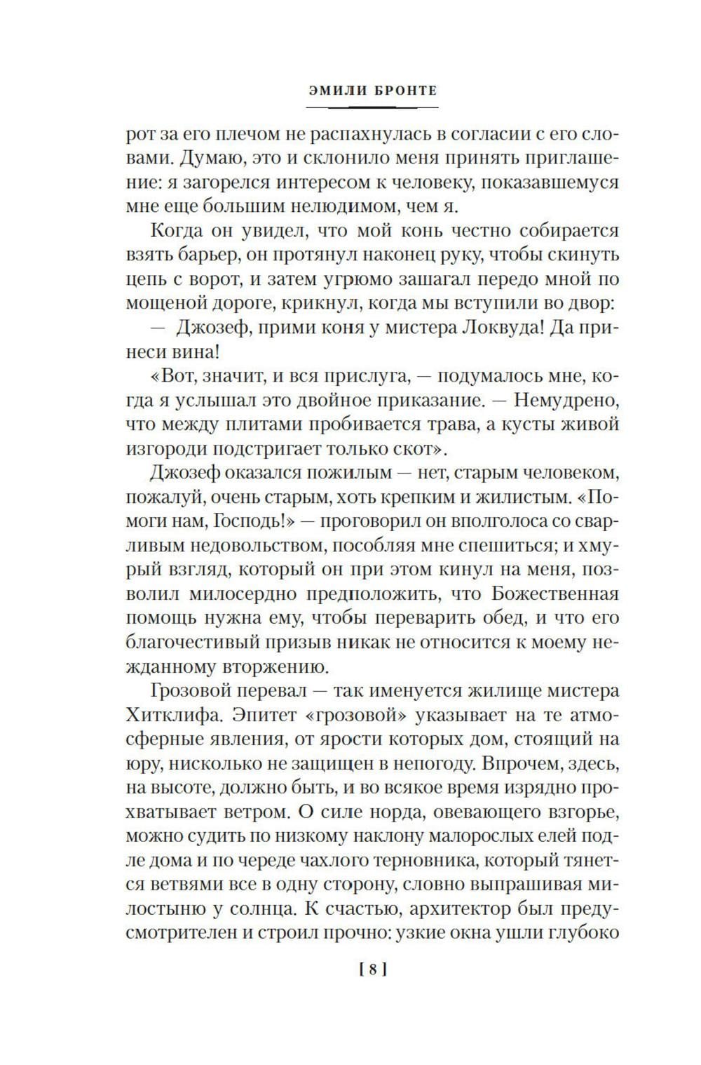 «Грозовой перевал» - удивительный по своей силе роман английской писательницы Эмили Бронте, одно из самых таинственных произведений мировой литературы. Это история роковой страсти Хитклифа, приемного сына владельца поместья «Грозовой перевал», и дочери хозяина Кэтрин. Эмили Бронте трагически рано ушла из жизни, оставив читателям необычайные картины мрачных вересковых пустошей, на просторах которых бушуют человеческие страсти. И все же, как дочери приходского священника удалось создать столь «яростные и беспощадные натуры»? Это слова Шарлотты Бронте, пораженной тем, насколько произведение сестры не совпадало с нравами Викторианской эпохи. В настоящее издание, кроме романа «Грозовой перевал», вошли переводы стихотворений Эмили Бронте - современники считали ее талантливой поэтессой. Многие из этих стихотворений переведены на русский язык впервые. Тексты сопровождаются иллюстрациями и репродукциями картин известных английских художников - Чарльза Брока, Перси Тарранта, Эвелин де Морган.