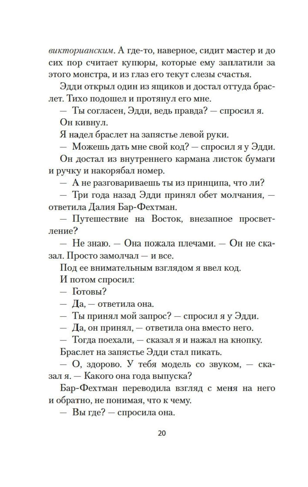 «Я вынужден смотреть на все только своими глазами». Его зовут Дан Арбель, и он живет в мире, который никогда не будет прежним. Гениальное изобретение изменило этот мир навсегда. Ни один человек больше не привязан к своему телу. Простым нажатием кнопки он может оказаться в теле другого. Нет необходимости лететь в Таиланд - достаточно обменяться телами с тем, кто отдыхает на тайском пляже. Необязательно объяснять врачу свои симптомы: врач может на несколько секунд оказаться в вашем теле и узнать все, что нужно. Бесполезно тратить время на фитнес, куда удобнее одолжить свое тело тренеру. Мир никогда не будет прежним, однако Дана Арбеля это не касается. Он - единственный в мире человек, неспособный меняться телами. Что это - врожденный порок, божественное благословение или ужасное проклятие?| Издательство | Азбука |