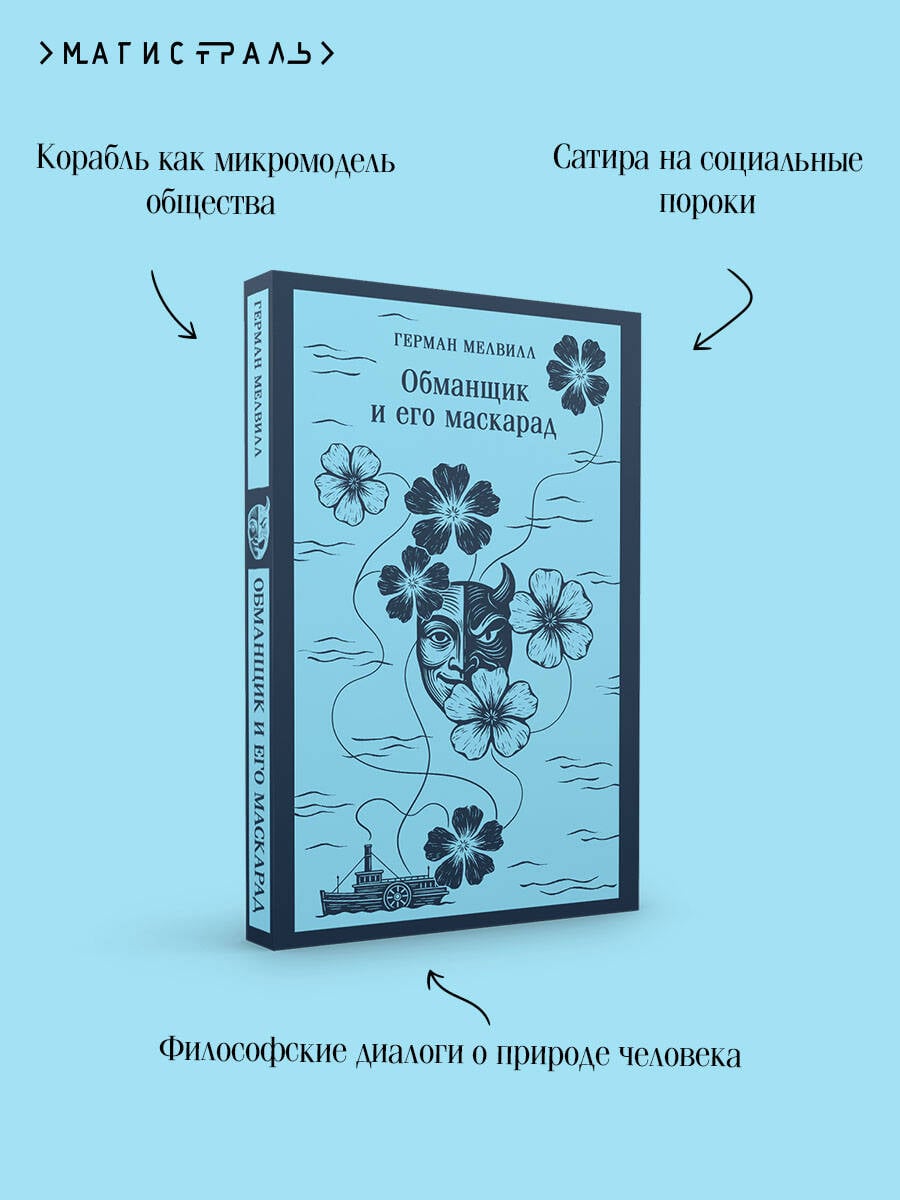 Сюжет романа довольно прост, но стиль и структура довольно сложные. На пароходе, плывущем по Миссисипи (Мелвилл любил использовать пароходы как метафору общества), плывёт компания самых разных обывателей. С каждым из них в разных ситуациях и сценах взаимодействует неуловимый, таинственный Обманщик. Вы становитесь свидетелем того, как «Жертва» и «Хищник» пытаются получить преимущество друг над другом. Создаётся впечатление, что персонажи нуждаются в обмане, хотят, чтобы их эксплуатировали. Обманщик через сатиру и аллегории вскрывает лицемерие общества, критикует эксплуатацию и расовое неравенство. Герман Мелвилл (1819-1891) - известный американский писатель. С 18 лет плавал юнгой на пакетботе, некоторое время работал учителем, затем оказался на китобойном судне. Не выдержав тирании сурового капитана, он сбежал. Месяц жил среди людоедов в долине Тайпи. Творческую карьеру начал с описания своей жизни в плену. «Обманщик и его маскарад» - одно из последних крупных художественных произведений автора. Был опубликован 1 апреля 1857 года, в тот же день, когда происходит действие романа. Семья отца Мелвилла была родом из Шотландии, где в День смеха существует традиция отправлять людей в дальние путешествия или с невыполнимыми поручениями. Автор мастерски играет с формой повествования, сочетая диалоги, эссе и притчи, заставляя читателя задуматься о природе истины и обмана; в этом произведении Мелвилл выступает как своеобразный предтеча постмодернизма.| Издательство | ООО "Издательство "Эксмо" |
