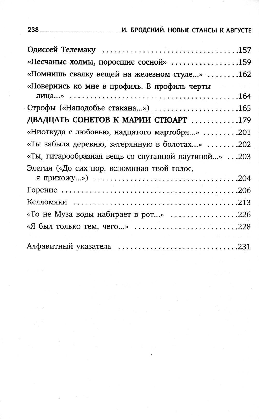 Комплект содержит три сборника стихотворений Иосифа Бродского, впервые опубликованные в 1980-1990-е годы в американском издательстве «Ардис»: «Новые стансы к Августе» (1983), «Урания» (1987) и «Пейзаж с наводнением» (1996). Эти последние в творчестве автора три книги стихов представляют его как величайшего поэта и мыслителя XX века, продолжающего традиции русских классиков и в то же время привносящего в литературу свой собственный поэтический голос. Все тексты при подготовке были выверены заново.