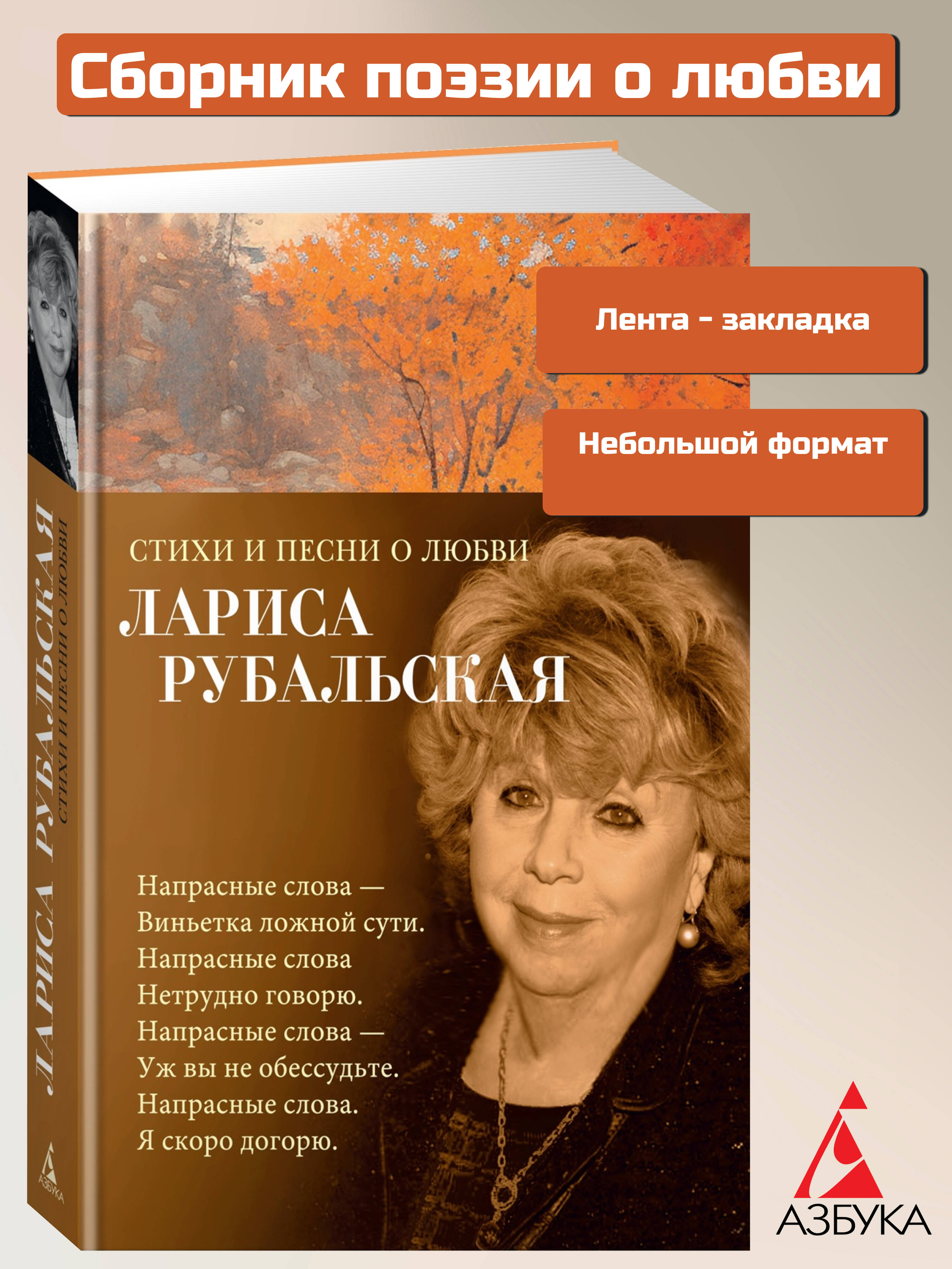 Лариса Рубальская - известный поэт-песенник. Многие песни на ее стихи стали золотыми шлягерами в исполнении самых ярких звезд российской эстрады - Аллы Пугачевой, Валерия Леонтьева, Ирины Аллегровой, Александра Малинина, Михаила Муромова, Филиппа Киркорова и других популярных артистов. В сборник вошли избранные стихотворения разных лет, в том числе положенные на музыку: "Странная женщина", "Напрасные слова", "Угонщица", "Сокольники", "Доченька", "Виноват я, виноват", "Переведи часы назад" и др. О песнях, снискавших всенародную любовь, сама поэтесса говорит так: "Эти песни объективно хорошие, а не случайно раскрученные. В них не вложены деньги, связи, они живут сами по себе... К тому же песни выбраны хорошими артистами, поэтому их жизнь оказалась длинной. Она зависит еще от того, стал ли ретро сам автор". В чем творческий секрет Ларисы Рубальской, ее неувядающего успеха? Пожалуй, в том, что в стихах она ведет доверительный разговор о жизни, времени и любви; иногда в нем чувствуется грусть, иногда ирония, но он неизменно проникнут надеждой на лучшее и верой в добро.| Издательство | Азбука-Аттикус Издат.группа ООО |