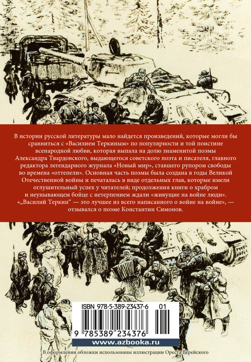 В истории русской литературы мало найдется произведений, которые могли бы сравниться с "Василием Теркиным" по популярности и той поистине всенародной любви, которая выпала на долю знаменитой поэмы Александра Твардовского, выдающегося советского поэта и писателя, главного редактора легендарного журнала "Новый мир", ставшего рупором свободы во времена "оттепели". Основная часть поэмы была создана в годы Великой Отечественной войны и печаталась в виде отдельных глав, которые имели оглушительный успех у читателей; продолжения книги о храбром и неунывающем бойце с нетерпением ждали "живущие на войне люди". ""Василий Теркин" - это лучшее из всего написанного о войне на войне", - отзывался о поэме Константин Симонов. В настоящий сборник, помимо "Василия Теркина", вошло и его продолжение - "Теркин на том свете", написанное спустя десять лет после окончания войны, - поэма "Дом у дороги", посвященная судьбе на войне русской женщины; а также избранные стихотворения, созданные в разные годы жизни, включая "Я убит подо Ржевом", "В тот день, когда окончилась война" и др.| Издательство | Азбука-Аттикус Издат.группа ООО |