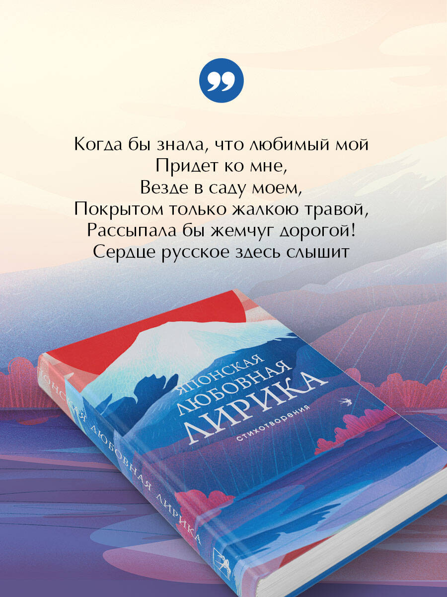 Впервые за много лет читателю открывается мир классической японской любовной лирики в переводах Анны Глускиной - одной из важнейших советских японисток, лично составившей эту антологию в конце восьмидесятых годов. Минималистичная, но полная нежности японская поэзия не стареет с веками, вновь и вновь оказываясь поразительно актуальной, помогая преодолеть житейские трудности или выразить казалось бы невыразимые чувства. В книгу вошли стихотворения VIII, X и XIII веков, внимательно отобранные из трёх лучших японских поэтических антологий и прокомментированные переводчицей, работа которой передаёт все нюансы классического японского стихосложения на русском языке. Обновленное оформление серии «Собрание больших поэтов» с иллюстрацией на полный разворот обложки придаёт книге ещё большее изящество, а удобный формат сборника позволяет взять его с собой в дорогу, чтобы погрузиться в мир японской поэзии в любом месте и в любое время.