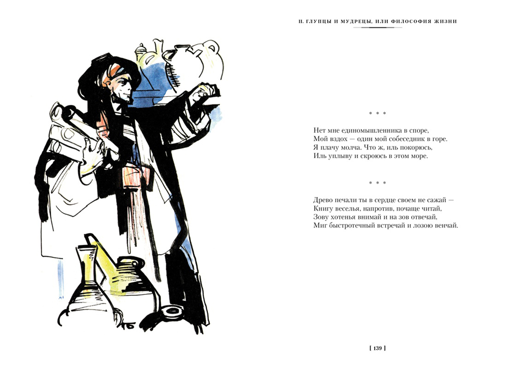 Великий поэт и выдающийся ученый Омар Хайям родился в городе Нишапуре в 1048 году. Его перу принадлежит ряд трудов по философии, астрономии и математике, причем в области математики он на несколько веков опередил своих современников. Сегодня научные труды Хайяма известны в основном лишь специалистам по истории науки. Всемирную же славу Омару Хайяму принесли его четверостишия-рубаи, лирический герой которых пытается понять мироздание, постигнуть природу человека и Бога. В настоящем издании стихотворения Хайяма, а также его прозаические тексты сопровождаются великолепными рисунками художника Павла Бунина.