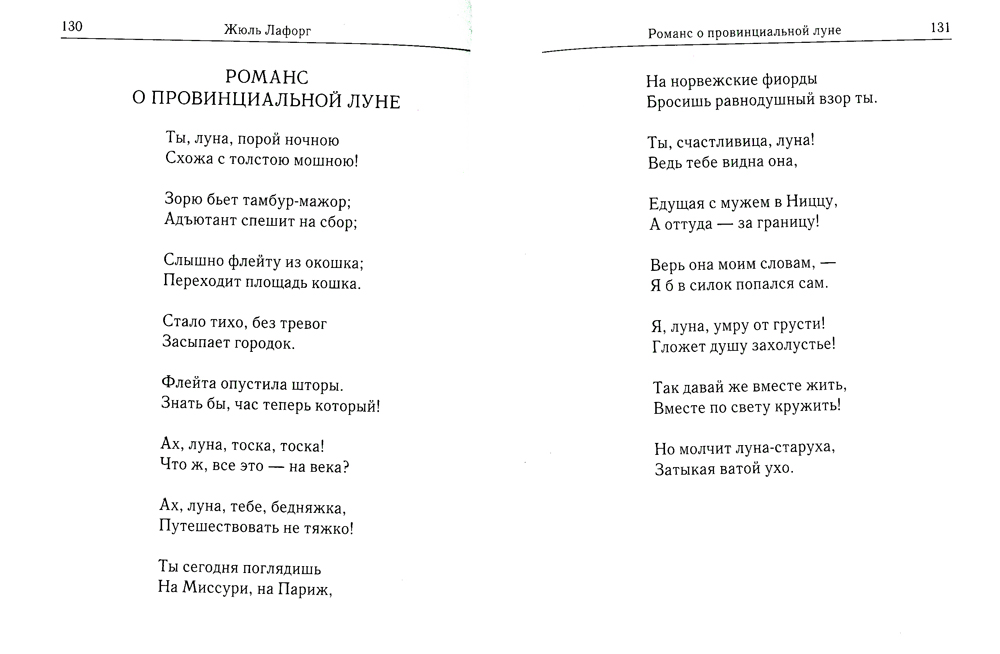 Жюль Лафорг (1860-1887), предшественник символизма, «французский Гейне», «Гамлет без шпаги» - рано умерший писатель, поэт, создавший неповторимый литературный мир, всецело новый и неожиданный. «Это был поэт, богатый всеми завоеваниями культуры... природный гений, сотканный из чувствительности, иронии, фантазии и ясновидения... гений, полный красок и света», - писал о нем современник. Благородный, требовательный к себе человек, Жюль Лафорг, несмотря на сверходаренность, написал немного, а в переводах на русский язык его произведения публиковались до обидного редко. Вот почему этот Автор - тонкий, изысканный, вместивший в себя, несмотря только на 27 прожитых лет, целую Вечность, - остается почти неизвестным даже многим ценителям интеллектуальной литературы. Это издание поможет читателям воскресить для себя истинного Поэта, выразителя Человечности, философской Мудрости и высокого Духа.| Издательство | БММ |