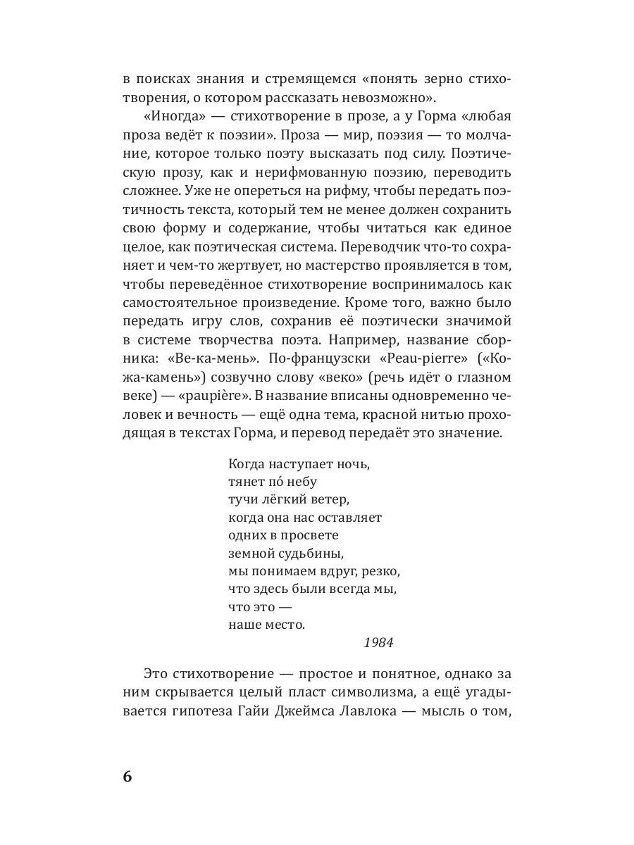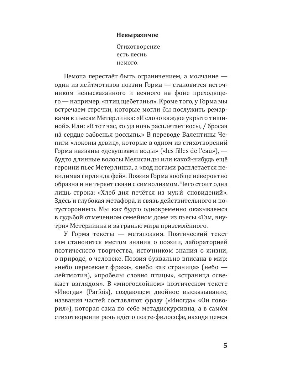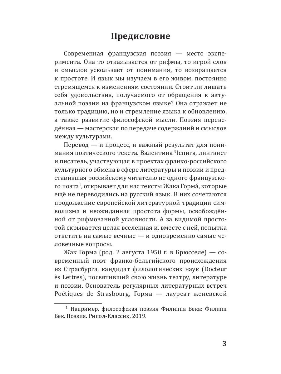 Жак Горма - современный франкоязычный поэт, лауреат женевской премии Plume d'Or (1983), премий Общества Писателей Эльзаса, Лотарингии и Бельфора (2000) и Франсуа Копэ Французской Академии (2018). Стихотворения для этого сборника поэт выбрал сам, стремясь показать русскоязычному читателю самые важные грани своей поэтической вселенной. В его поэзии находят продолжение философские изыскания бельгийского драматурга Мориса Метерлинка, происходит попытка показать невидимое, невыразимое и невысказанное. Поэтический текст становится лабораторией поэтического творчества, источником знания о жизни, о природе и о человеке.| Издательство | Омега-Л |