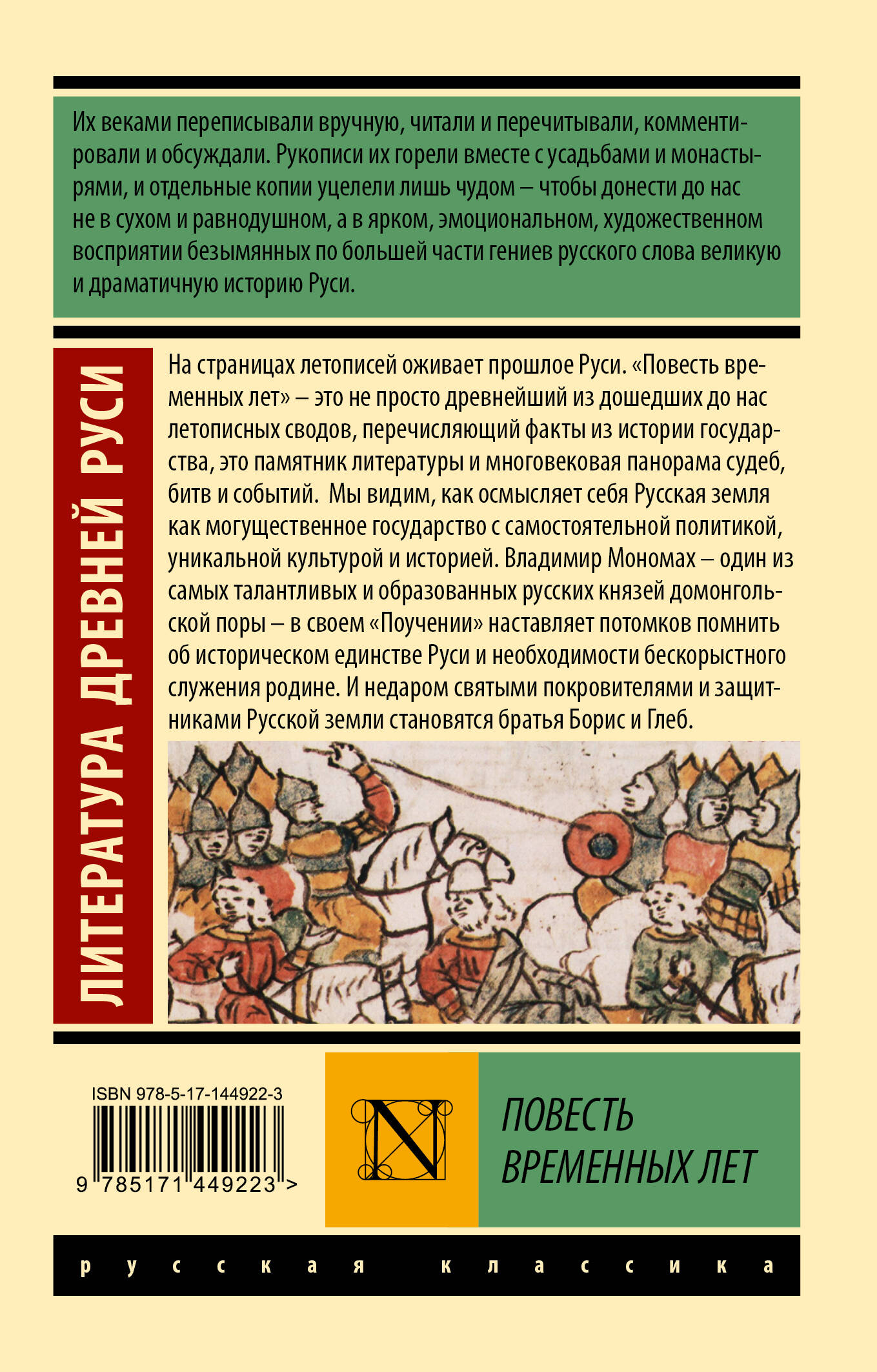 Памятник русской литературы - древнейший из сохранившихся до наших дней летописных сводов. История зарождения и развития Российского государства - начиная от первого похода русов на Константинополь и заканчивая началом правления Владимира Мономаха.| Издательство | Издательство "АСТ" |