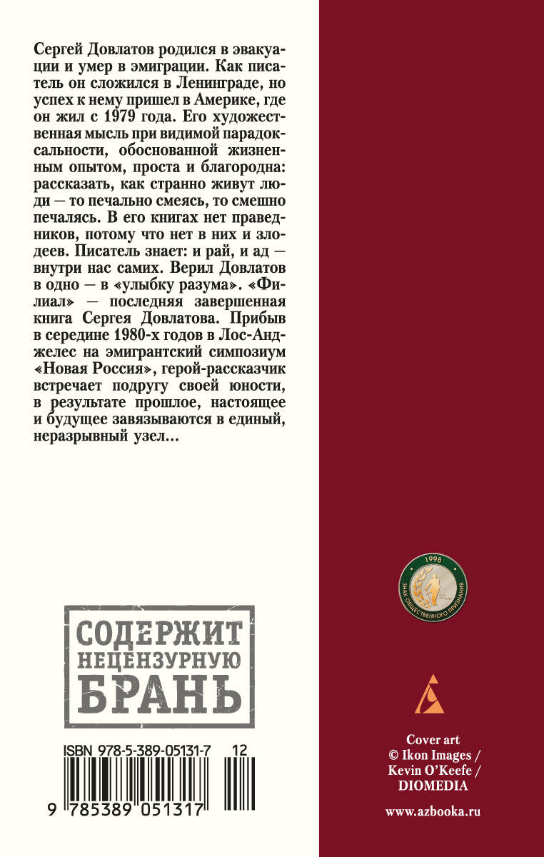 Сергей Довлатов - один из наиболее популярных и читаемых русских писателей конца XX - начала XXI века. Его повести, рассказы и записные книжки переведены на множество языков, экранизированы, изучаются в школе и вузах. "Заповедник", "Зона", "Иностранка", "Наши", "Чемодан" - эти и другие удивительно смешные и пронзительно печальные довлатовские вещи давно стали классикой. "Отморозил пальцы ног и уши головы", "выпил накануне - ощущение, как будто проглотил заячью шапку с ушами", "алкоголизм излечим, пьянство - нет" - шутки Довлатова запоминаешь сразу и на всю жизнь, а книги перечитываешь десятки раз. Они никогда не надоедают.| Издательство | Азбука-Аттикус Издат.группа ООО |