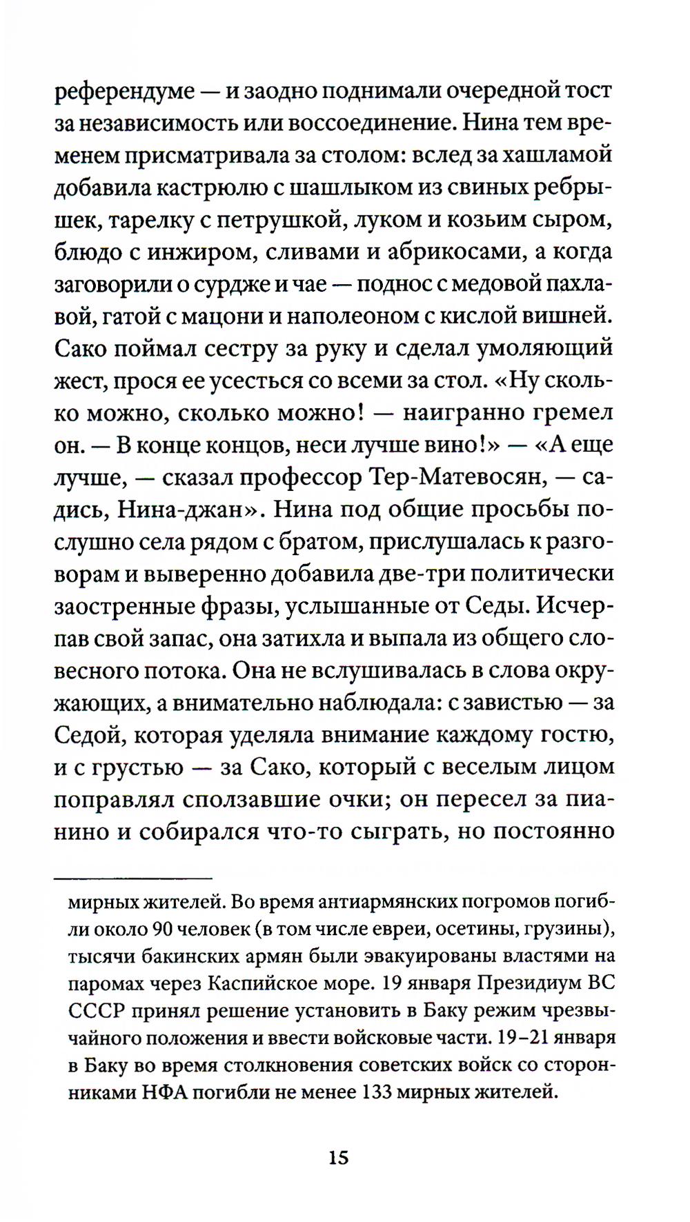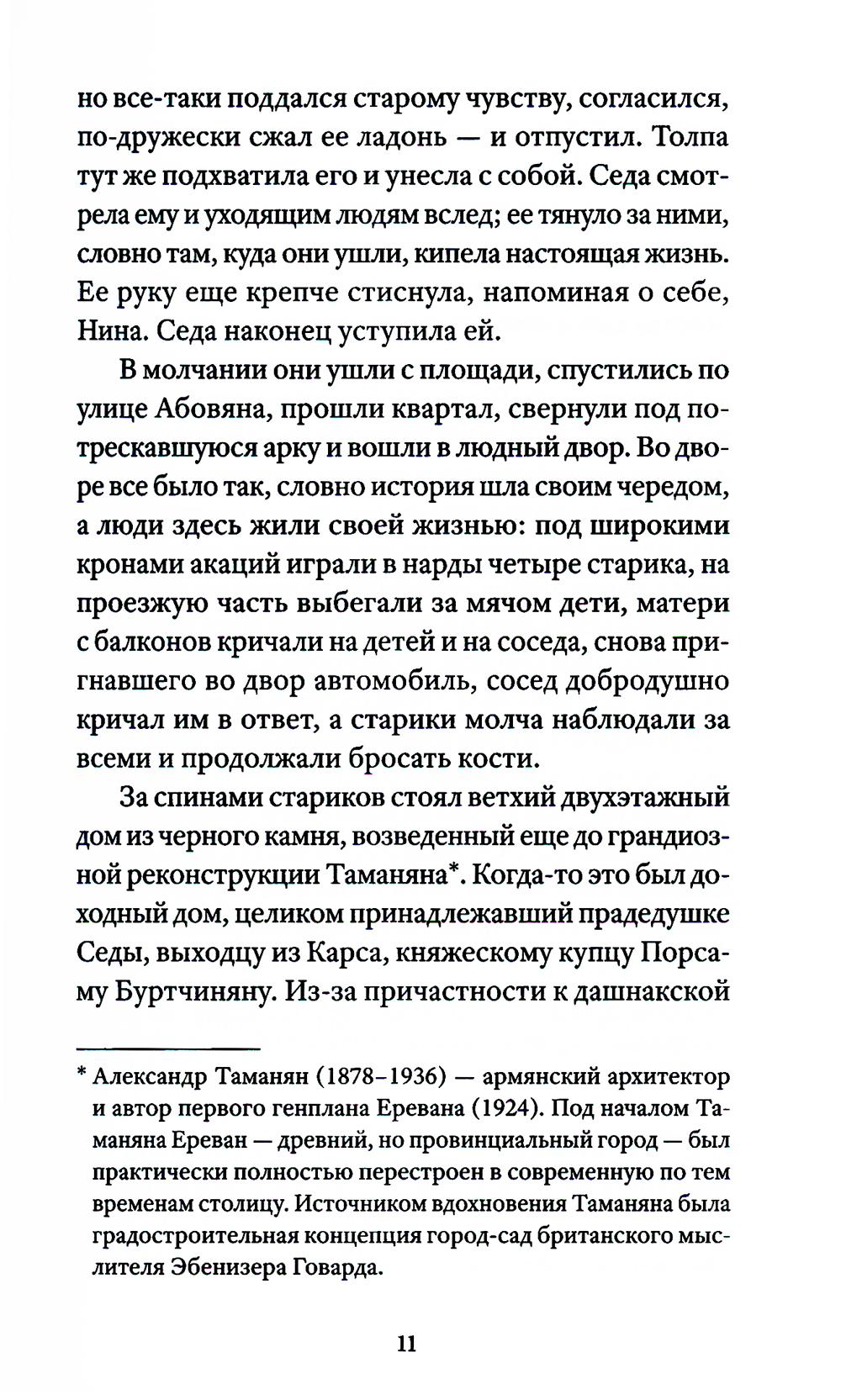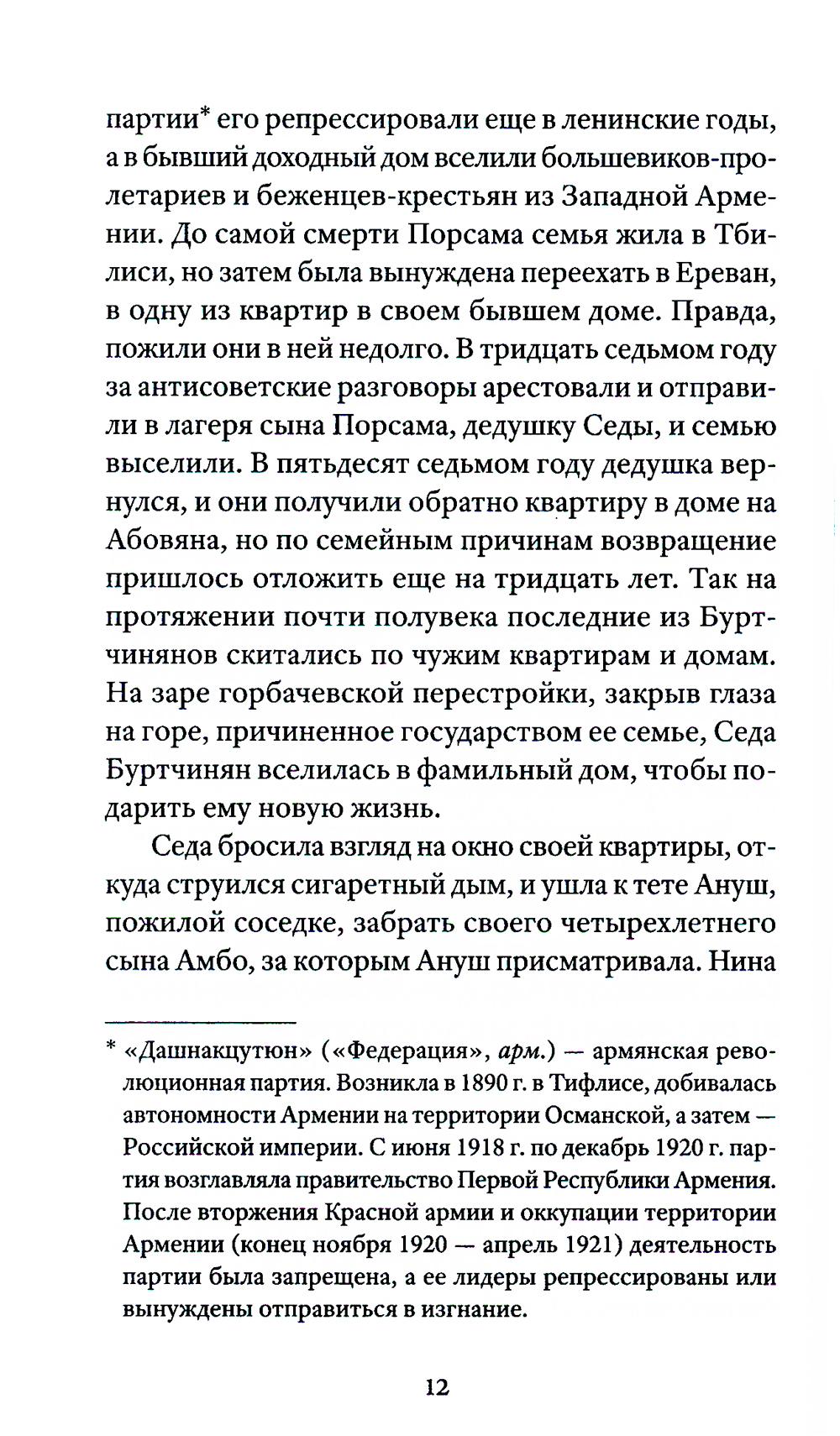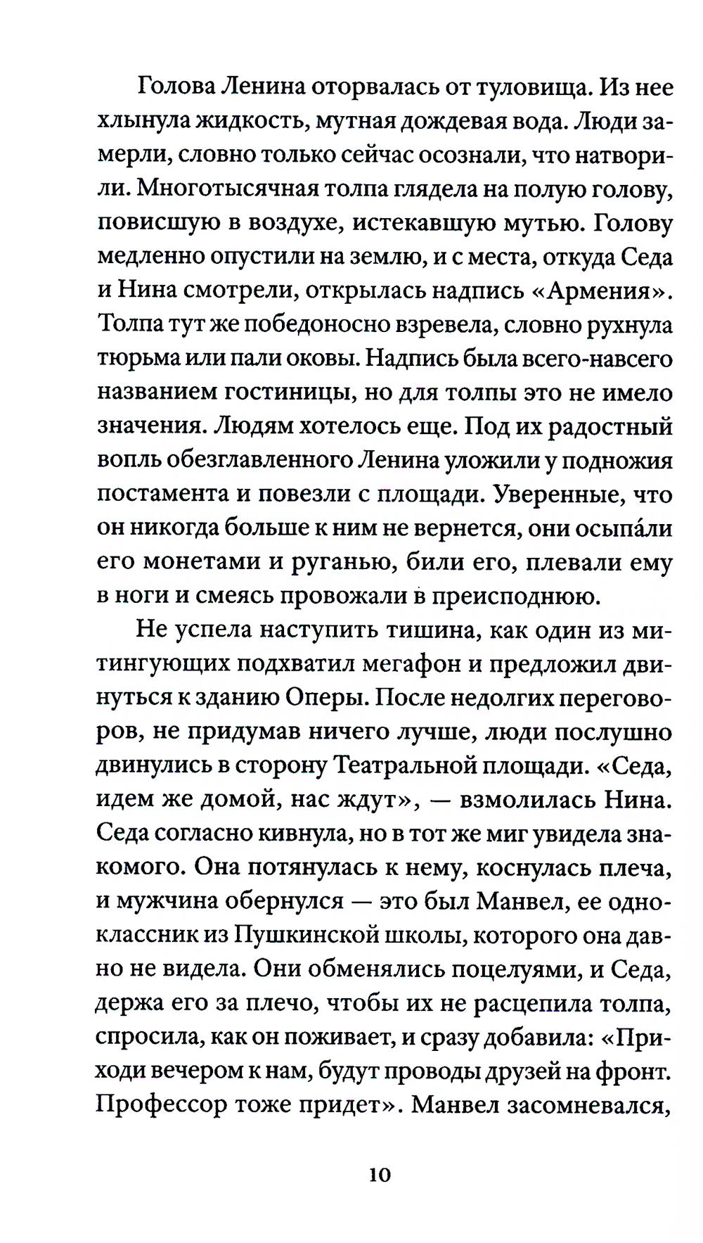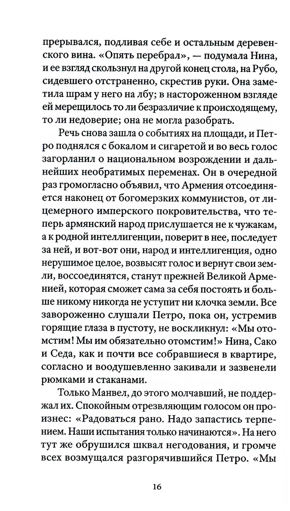 В центре сюжета - молодая семья: филолог Седа и архитектор Саркис. В апреле 1991 года они с надеждой встречают начало новой жизни - рождение независимой Армении. Но поскольку продолжаются карабахская война, начавшаяся в 1989-м, и экономическая блокада, семья сталкивается с испытаниями: голодом, политической разрухой, потерей близких. Десятилетие независимости оборачивается кошмаром. Они предают друг друга, совершают ошибки, уезжают в разные страны. В последний раз выжившие члены семьи соберутся вместе спустя 20 лет, чтобы подвести черту под прошлым. Арен Ванян (р. 1992) - литературный критик, независимый исследователь. Публиковался в журналах («Волга», «Знамя») и в медиа («Горький», «НОЖ», «Правила жизни», «Прочтение»). Жил в Москве, сейчас - между Ереваном и Дрезденом.| Издательство | Изд. Ивана Лимбаха |