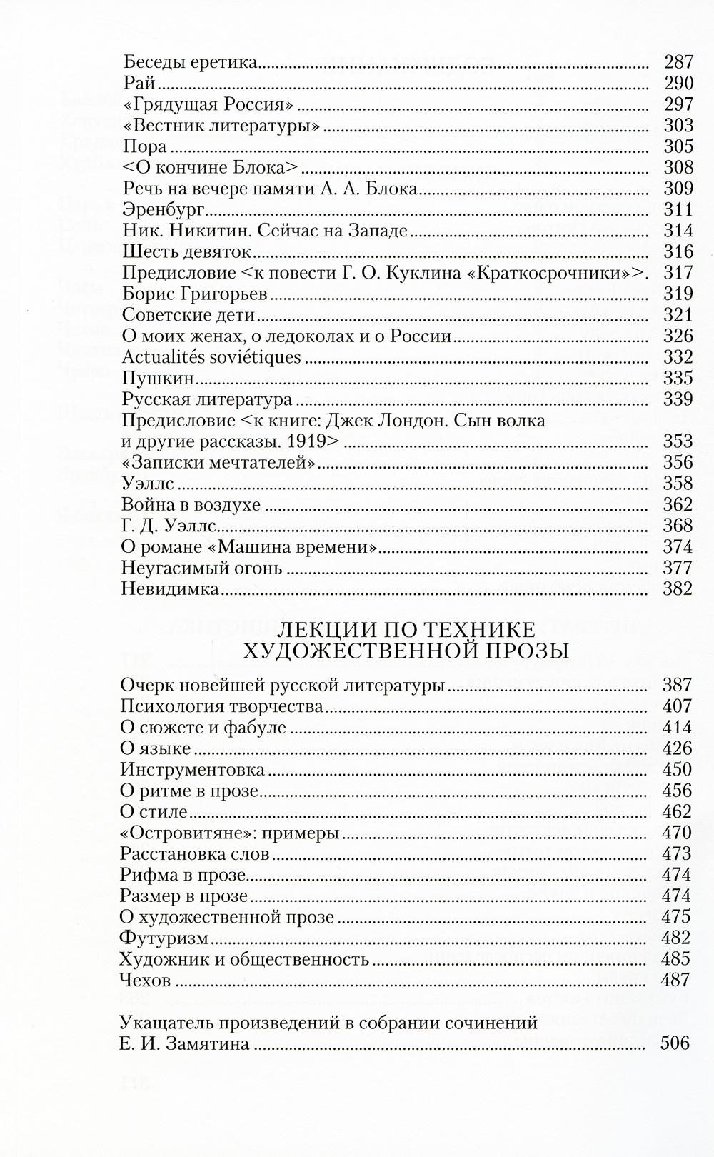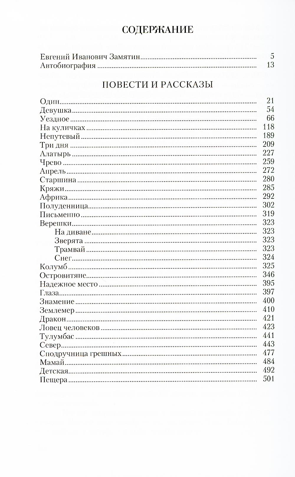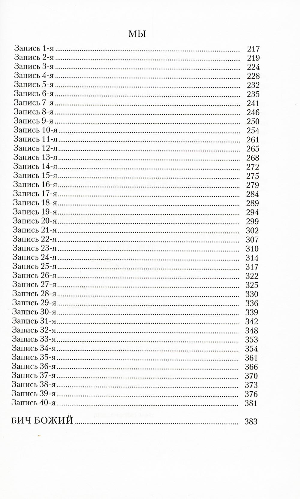 Творчество талантливого русского писателя Е. Замятина (1874-1937), чье творчество более чем на полстолетия оказалось закрытым для российских читателей, пришлось на эпоху крупных преобразований и волнений в нашей стране, потому его произведения отражают события, которые сотрясали ее в тот или иной период. В собрание сочинений этого писателя, подготовленное Книжным клубом, вошли наиболее известные произведения: упомянутые выше романы «Мы», «Бич божий», рассказы, повести, киносценарии, критика и публицистика. В первом произведении, написанном в фантастической манере, от лица строителя космического корабля «Интеграл», являющимся жителем Единого государства, рассказывается о жизни людей в будущем. Автор изображает совершенное Государство, возглавляемое Благодетелем. В этом государстве прозрачных стен, талонов на любовь, механической музыки, в этом обществе «математически совершенной жизни» человек - винтик в образцово отлаженном механизме. Здесь нет имен, есть номера, порядок и предписания, а отступления от правил и санкционированного образа мысли караются Машиной. «Мы» - художественный конспект возможного отдаленного будущего, уготованного человечеству, смелая антиутопия, роман-предупреждение, в котором просматривается надежда автора на то, что разум и душа одержат верх над происходящим безумием. Роман «Мы» положил начало целому ряду романов-антиутопий: «О, дивный новый мир!» О. Хаксли, «1984» Дж. Оруэлла. «Мы» - книга острая и современная. Осмысливая прошлое, живя в настоящем, мы не можем не задумываться над тем, кто же мы? Другой роман Замятина, «Бич Божий», был завершен в 1935 году и издан через два года после смерти писателя. В нашей стране он стал известен намного позже. В этом произведении автор подводит итоги своих предыдущих размышлений. Современная обстановка рисуется здесь через исторический сюжет, а осознание происходящего рассматривается с точки зрения христианской религии. Роман написан достаточно сухим, сжатым языком. При его прочтении образы мелькают как яркий калейдоскоп, собранные по частям фрагменты мозаики. Очень многое нужно додумывать и дорисовывать. Кроме того, в произведении присутствуют и элементы русского фольклора, рассматривается попытка соединить две культуры, русскую и европейскую. Заканчивается роман большим знаком вопроса: в каком направлении дальше пойдет развитие человечества, зависит от окончательного избрания своего правителя. Именно он должен решить, по какому пути идти. Оба романа объединены мыслью: то, что сейчас происходит - страшно и неправдоподобно. Нужно искать выход из сложившейся ситуации, очнуться от спячки и начать действовать.| Издательство | Книж.клуб Книговек |