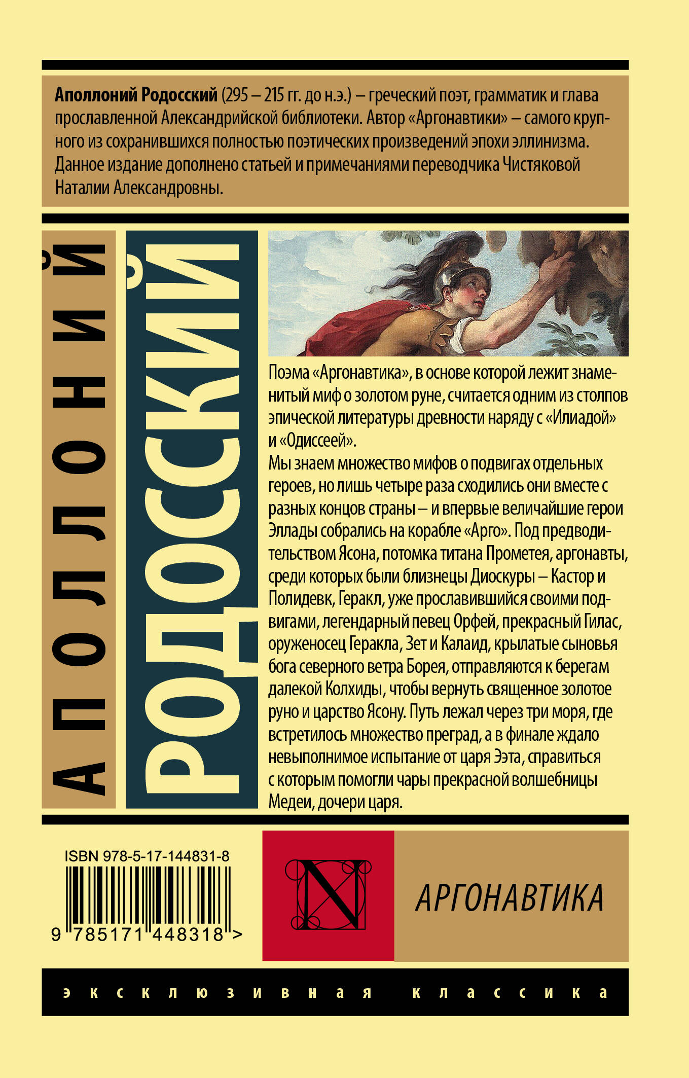 Поэма "Аргонавтика", в основе которой лежит знаменитый миф о золотом руне, считается одним из столпов эпической литературы древности наряду с "Илиадой" и "Одиссеей". Мы знаем множество мифов о подвигах отдельных героев, но лишь четыре раза сходились они вместе с разных концов страны - и впервые величайшие герои Эллады собрались на корабле "Арго". Под предводительством Ясона, потомка титана Прометея, аргонавты, среди которых были близнецы Диоскуры - Кастор и Полидевк, Геракл, уже прославившийся своими подвигами, легендарный певец Орфей, прекрасный Гилас, оруженосец Геракла, Зет и Калаид, крылатые сыновья бога северного ветра Борея, отправляются к берегам далекой Колхиды, чтобы вернуть священное золотое руно и царство Ясону. Путь их лежал через три моря, на пути встретилось множество преград, а в финале ждало невыполнимое испытание от царя Ээта, справиться с которым помогли лишь чары прекрасной волшебницы Медеи, дочери царя.| Издательство | ИЗДАТЕЛЬСТВО "АСТ" |