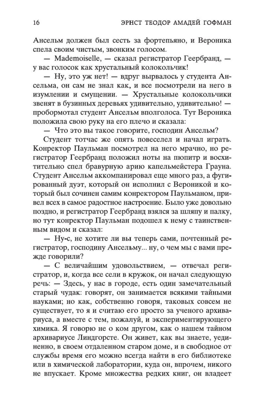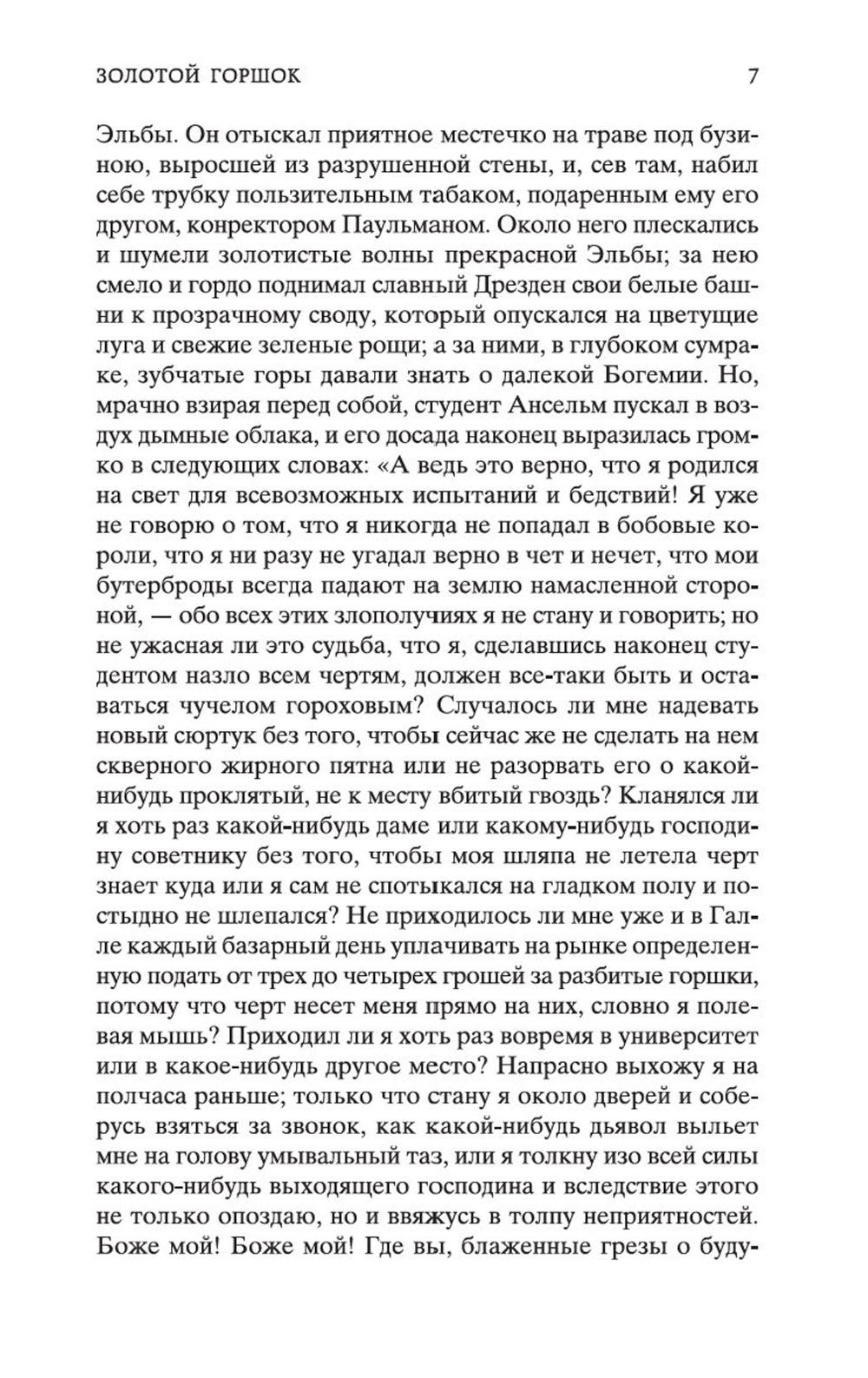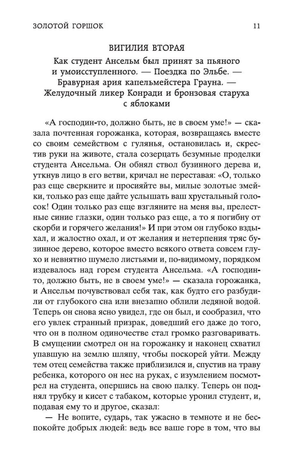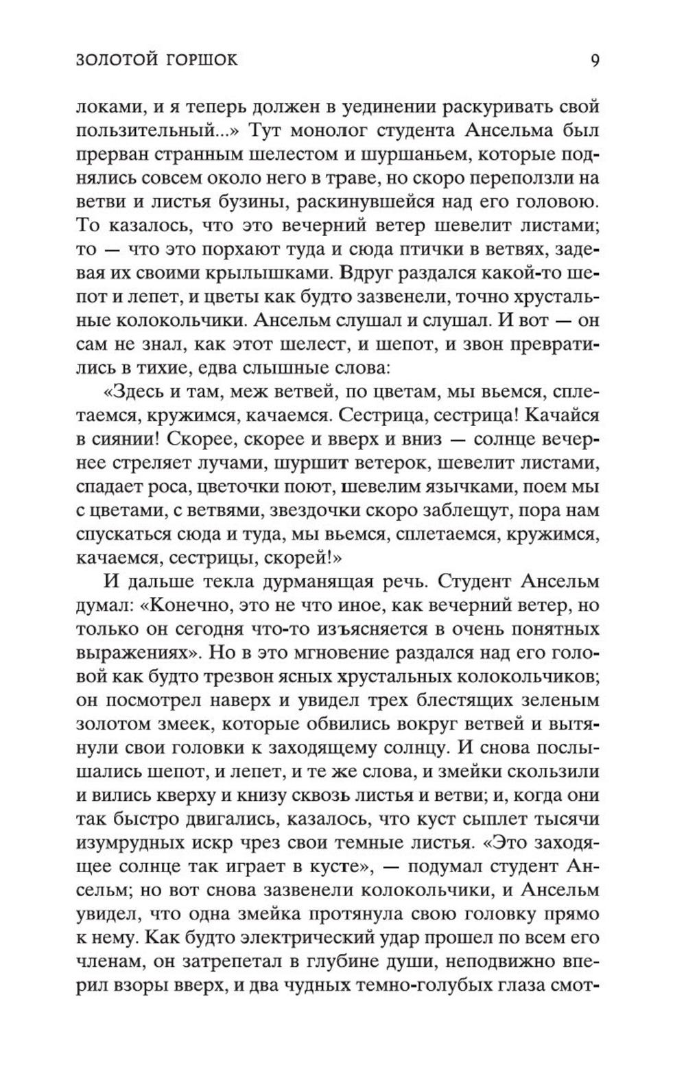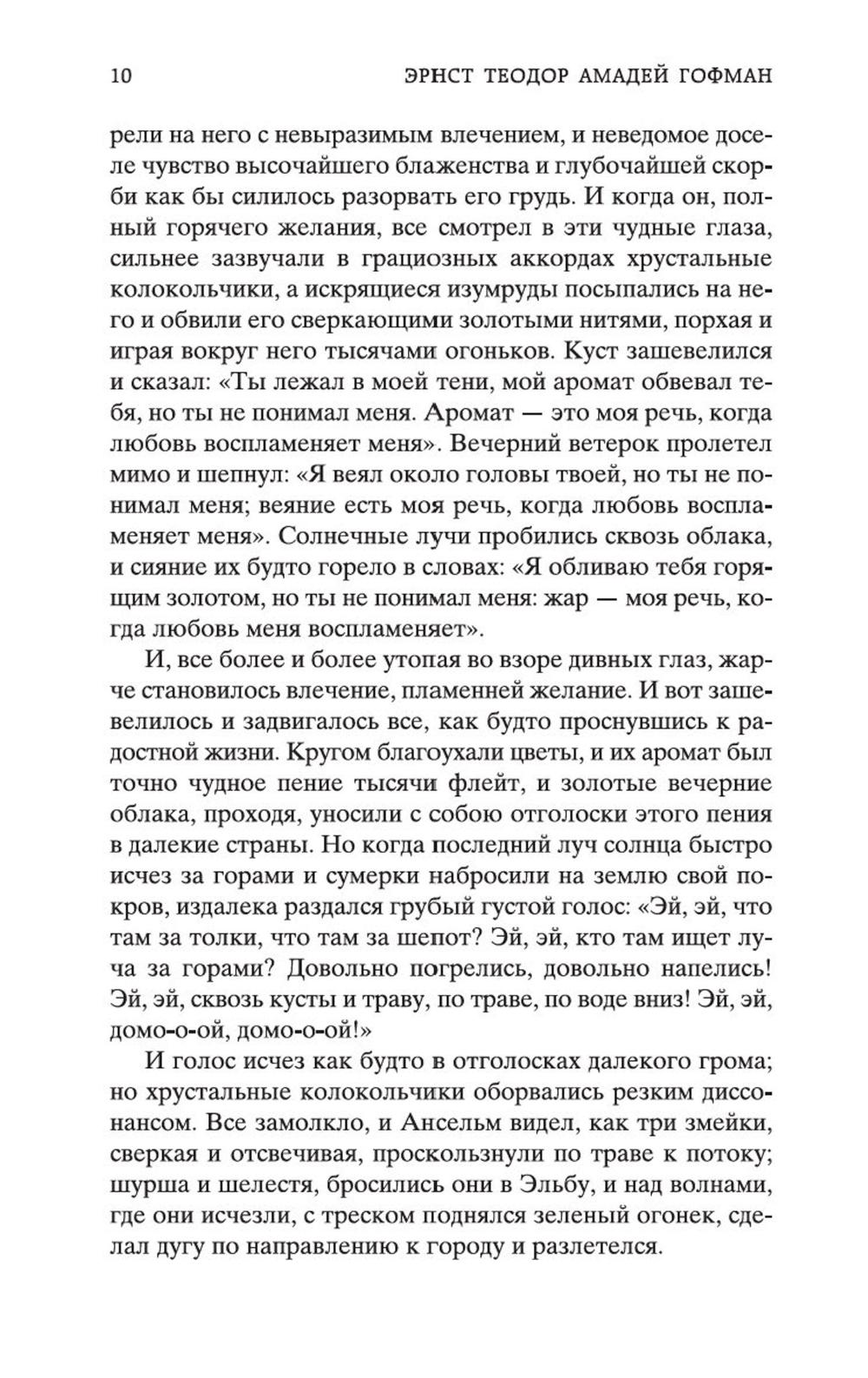 В сборник произведений знаменитого немецкого прозаика Эрнста Теодора Амадея Гофмана вошли его самые известные сказки («Золотой горшок», «Щелкунчик и мышиный король», «Крошка Цахес, по прозванию Циннобер») и новеллы («Приключения в Новогоднюю ночь», «Песочный человек», «Выбор невесты»), которые стали своего рода визитными карточками писателя и со временем были признаны шедеврами европейской романтической прозы. За прихотливой чередой странных, диковинных персонажей, за столкновениями страстей, за невероятными превратностями судеб незримо, а порой и явно присутствует Автор - оригинальный мифолог-мистик, певец «стихийных духов» и творец «совмещенных реальностей», под пером которого Дрезден XIX столетия может обернуться утопической Атлантидой, а украшенная к Рождеству детская комната - дивной волшебной страной; художник-визионер, одержимый кошмарными наваждениями, странными иллюзиями, зловещими подменами и головокружительными фантасмагориями; язвительный сатирик, зорко подмечающий социальные и нравственные изъяны своей эпохи; лукавый пародист-пересмешник, артистично и самозабвенно «играющий в литературу» и создающий виртуозные отражения Жизни и Искусства.