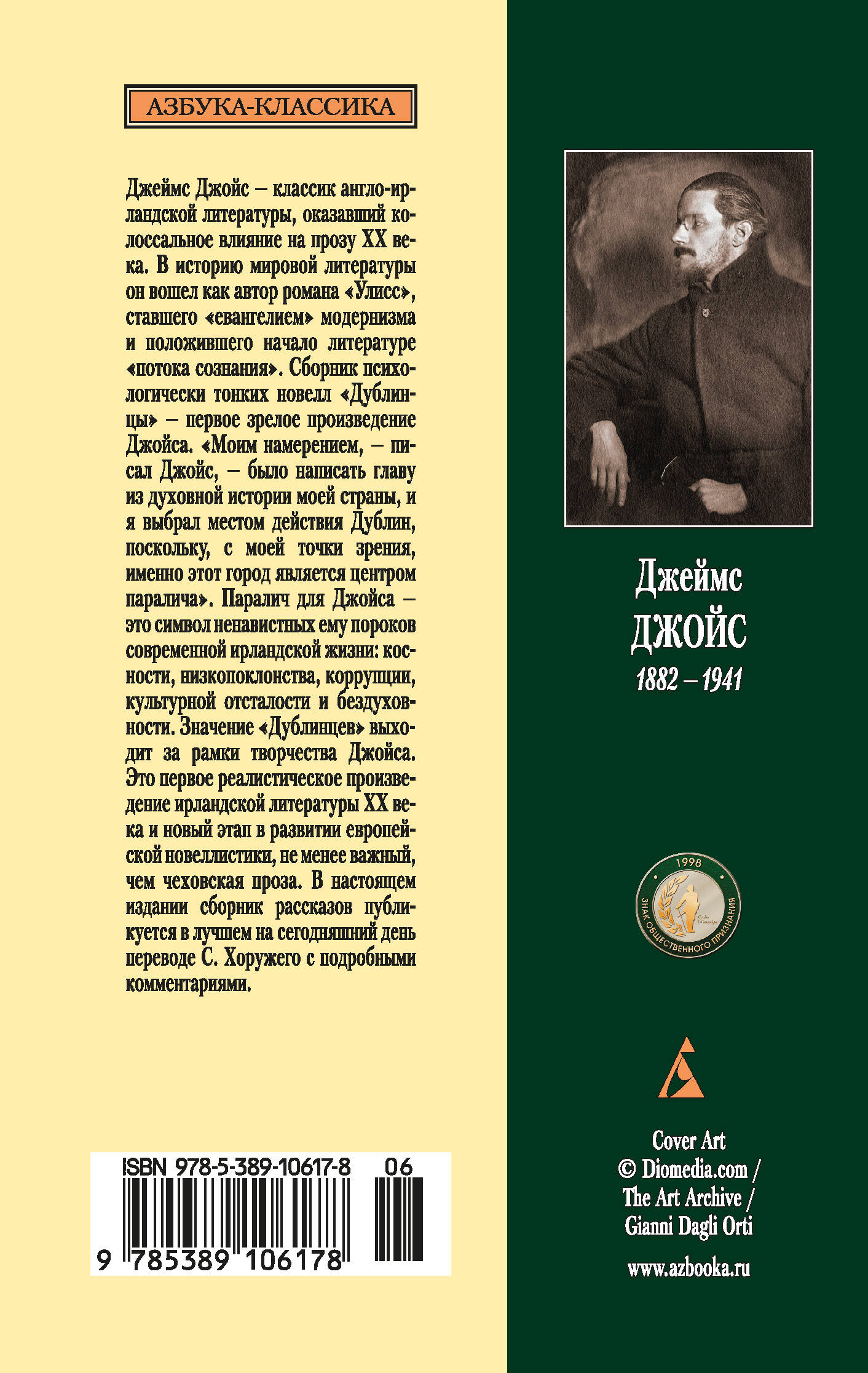 Джеймс Джойс - классик англо-ирландской литературы, оказавший колоссальное влияние на прозу XX века. В историю мировой литературы он вошел как автор романа "Улисс", ставшего "евангелием" модернизма и положившего начало литературе "потока сознания". Сборник психологически тонких новелл "Дублинцы" - первое зрелое произведение Джойса. "Моим намерением, - писал Джойс, - было написать главу из духовной истории моей страны, и я выбрал местом действия Дублин, поскольку, с моей точки зрения, именно этот город является центром паралича". Паралич для Джойса - это символ ненавистных ему пороков современной ирландской жизни: косности, низкопоклонства, коррупции, культурной отсталости и бездуховности. Значение "Дублинцев" выходит за рамки творчества Джойса. Это первое реалистическое произведение ирландской литературы XX века и новый этап в развитии европейской новеллистики, не менее важный, чем чеховская проза. В настоящем издании сборник рассказов публикуется в лучшем на сегодняшний день переводе С. Хоружего с подробными комментариями.| Издательство | Азбука-Аттикус Издат.группа ООО |