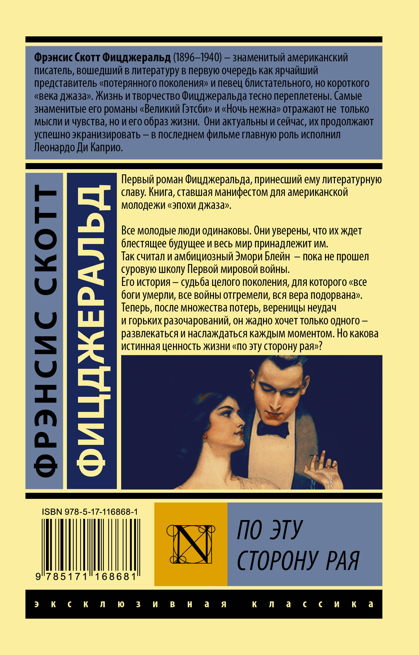 Первый роман Фицджеральда, принесший ему литературную славу. Книга, ставшая манифестом для американской молодежи "эпохи джаза". Все молодые люди одинаковы. Они уверены, что их ждет блестящее будущее и весь мир принадлежит именно им. Так считал и амбициозный Эмори Блейн - пока не прошел суровую школу Первой мировой войны. Его история - судьба целого поколения, для которого "все боги умерли, все войны отгремели, всякая вера подорвана". Теперь, после множества потерь, вереницы неудач и горьких разочарований он жадно хочет только одного - развлекаться и наслаждаться каждым моментом. Но какова истинная ценность жизни "по эту сторону рая"?| Издательство | Издательство "АСТ" |