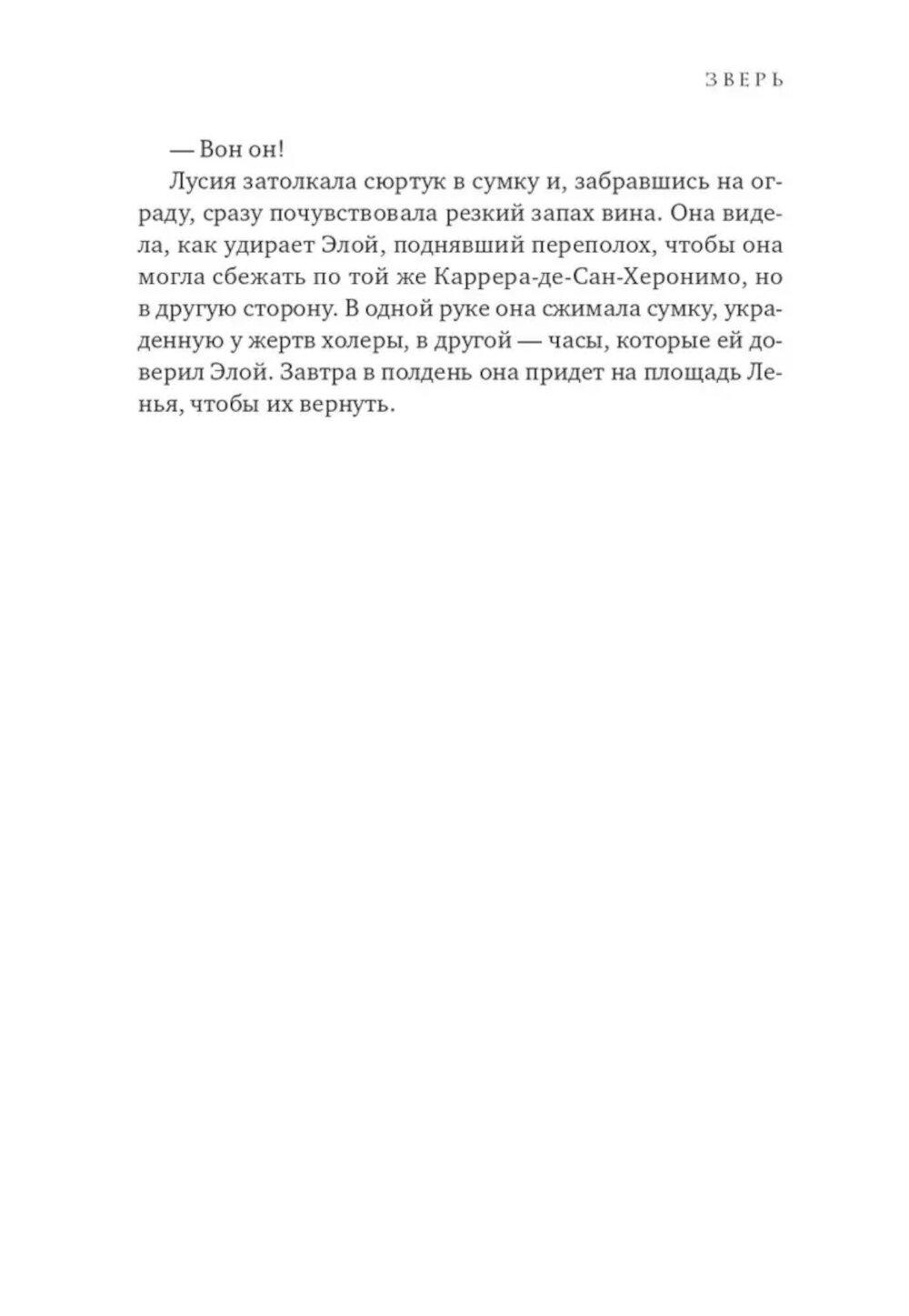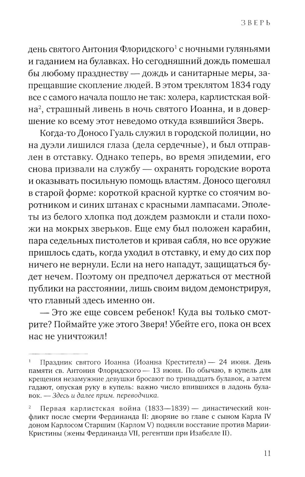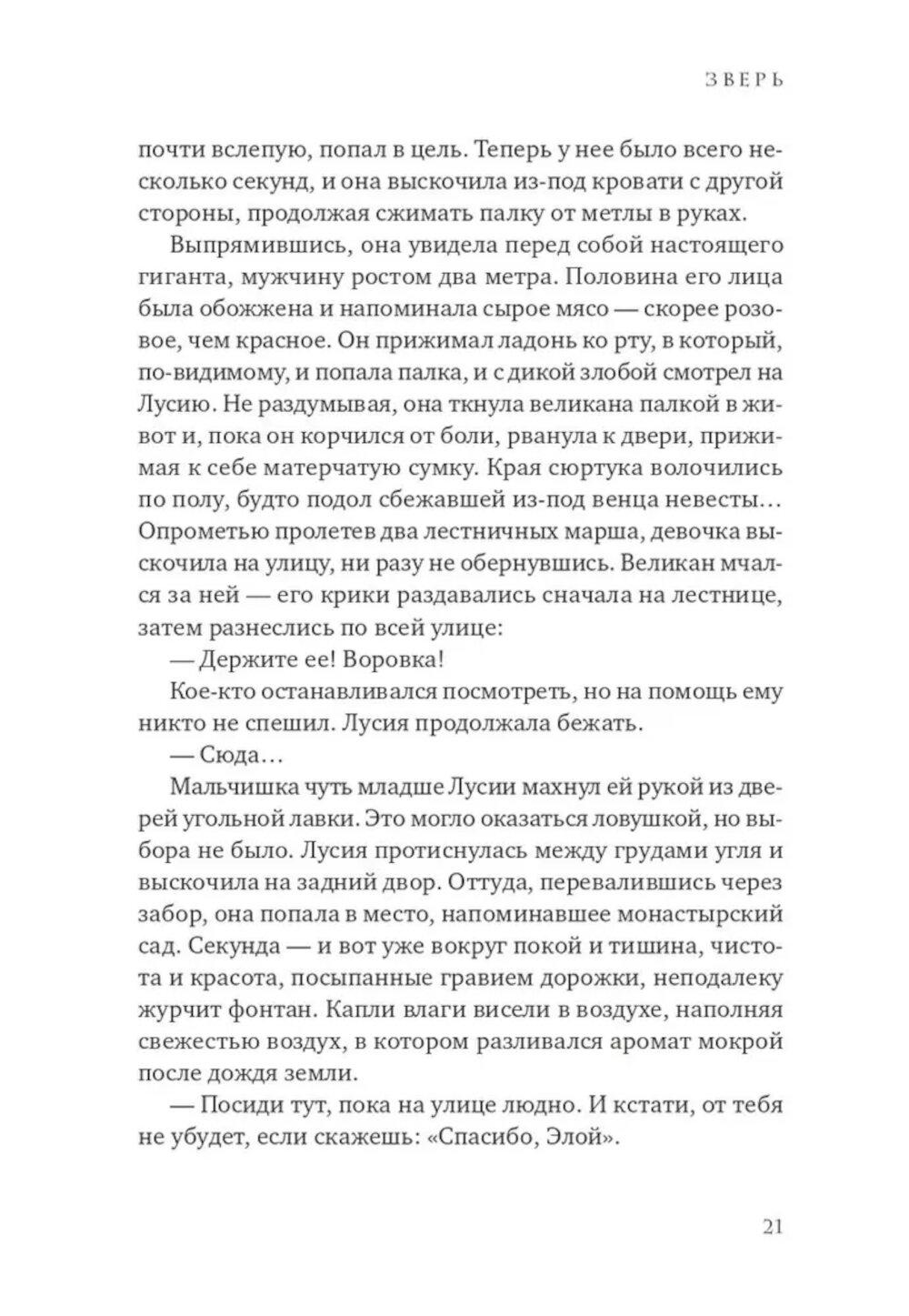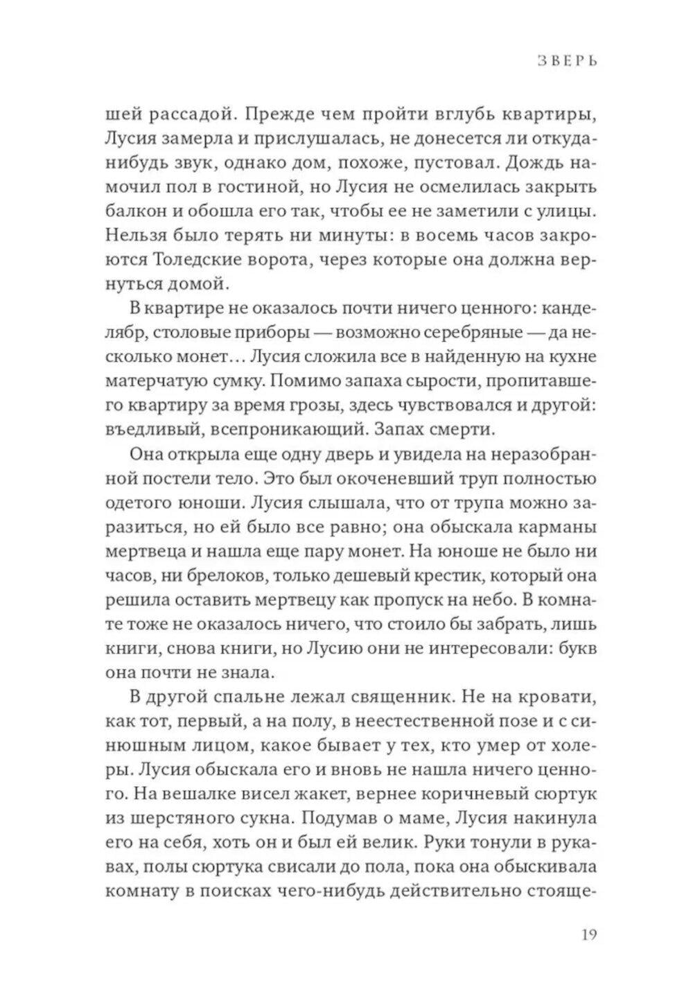 1834 год. Мадрид во власти эпидемии холеры, уносящей ежедневно десятки жизней. Больницы и приюты переполнены, умерших уже перестали считать. Но не только смертоносная болезнь держит в страхе жителей города: в бедных кварталах все чаще стали находить растерзанные тела ранее пропавших людей. Все считают, что эти чудовищно жестокие убийства совершает огромное животное, которое стали называть Зверем. Когда исчезает одиннадцатилетняя Клара, ее старшая сестра Лусия, не задумываясь об опасности, бросается на поиски. К ней присоединяются ведущий собственное расследование убийств репортер Диего, его старый приятель полицейский Доносо и необычный монах, владеющий боевыми искусствами, - брат Браулио. В этих поисках они попадут в закрытый мир тайных обществ, жутких ритуальных обрядов и политических интриг, не раз подвергнутся смертельной опасности и найдут таинственный перстень-печатку со скрещенными молотками, ради обладания которым многие готовы убить.| Издательство | Синдбад |