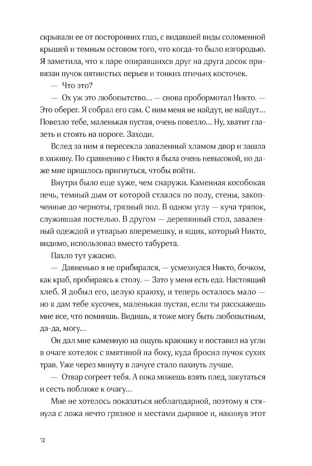 Она называет себя разными именами, но не помнит, кем была до того, как очнулась на незнакомом морском берегу. Теперь она «пустая»: у нее почти прозрачная кожа, белые волосы, глаза с алой радужкой... и пугающие магические способности. Долгое время она вынуждена скрываться в диком лесу, ведь в Бирентии - стране, полной предрассудков, - пустых ненавидят. Мечтая раскрыть тайну своего прошлого, она отправляется в опасное путешествие в столицу. Там она находит союзников и попадает на службу к влиятельному человеку, который, возможно, знает правду о ее происхождении. Но что, если разгадка окажется страшнее любого проклятия?| Издательство | Marshmallow Books |