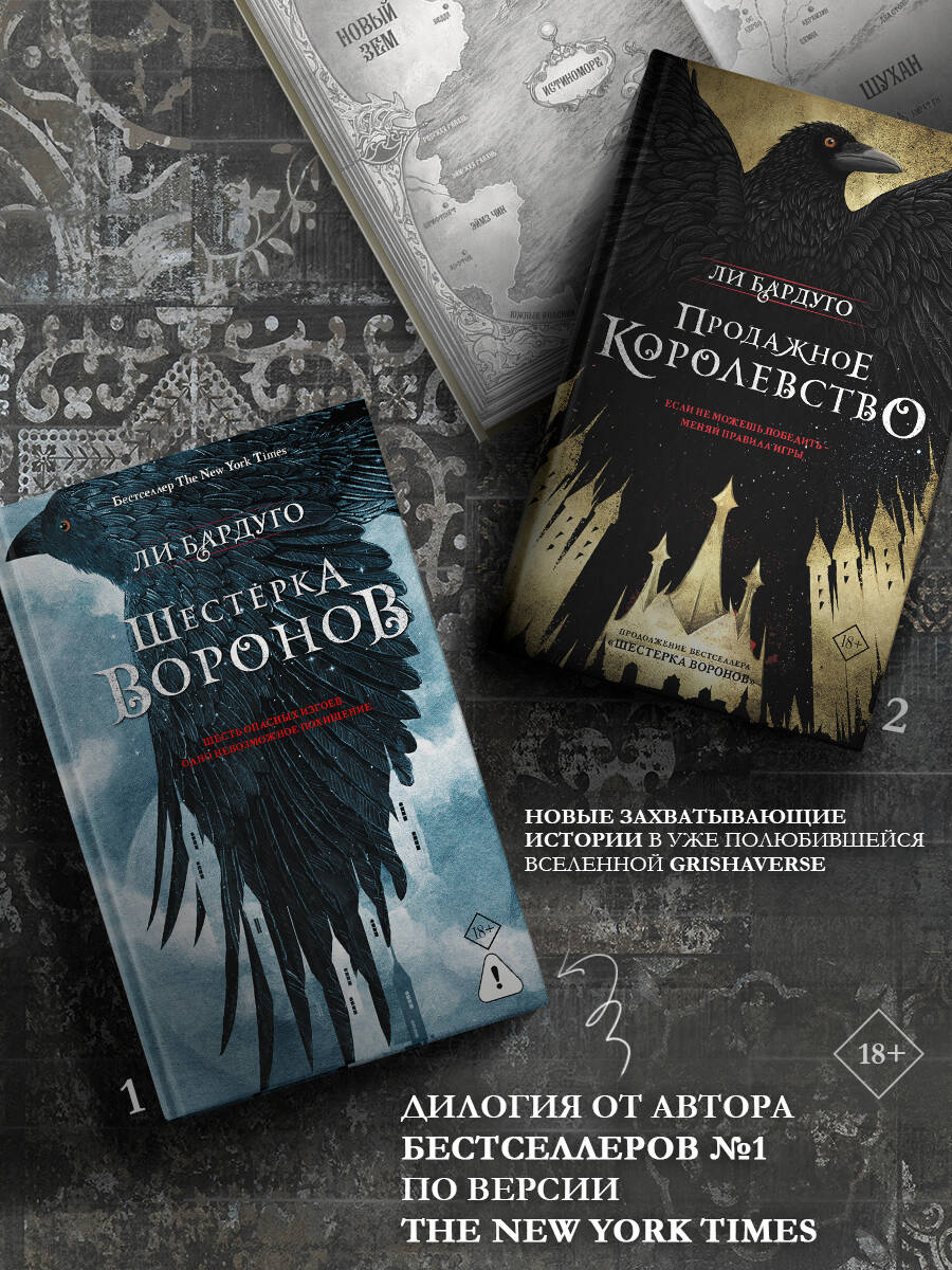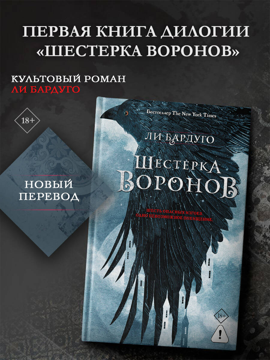 НЕЗАКОННОЕ ПОТРЕБЛЕНИЕ НАРКОТИЧЕСКИХ СРЕДСТВ, ПСИХОТРОПНЫХ ВЕЩЕСТВ, ИХ АНАЛОГОВ ПРИЧИНЯЕТ ВРЕД ЗДОРОВЬЮ, ИХ НЕЗАКОННЫЙ ОБОРОТ ЗАПРЕЩЕН И ВЛЕЧЕТ УСТАНОВЛЕННУЮ ЗАКОНОДАТЕЛЬСТВОМ ОТВЕТСТВЕННОСТЬ. - Захватывающее фэнтези Ли Бардуго. Первая книга дилогии. - История в культовой вселенной Grishaverse о шестерых харизматичных мошенниках. - «Шестерка воронов» - спин-офф трилогии бестселлеров Бардуго о необычных людях - гришах. Действие книги разворачивается в трущобах столицы государства Керчия Кеттердама, портового города, где царит беззаконие, а выживает хитрейший. - Легкий слог, динамичное повествование, сочные, не лишенные юмора диалоги и невероятные герои, которых невозможно не любить. - Ли Бардуго - американская писательница, создательница культовой фэнтези-вселенной про гришей, автор популярных циклов «Тень и кость», «Шестерка воронов», «Николай Ланцов», признанных бестселлерами в более чем в 50 странах. - Читайте книгу - смотрите сериал, основанный на книгах вселенной! В роли исполнительного продюсера выступил Шон Леви, который также работал над картиной «Очень странные дела». - Издание серии «Миры Ли Бардуго. Grishaverse» в новом переводе Наталии Осояну.| Издательство | Издательство "АСТ" |