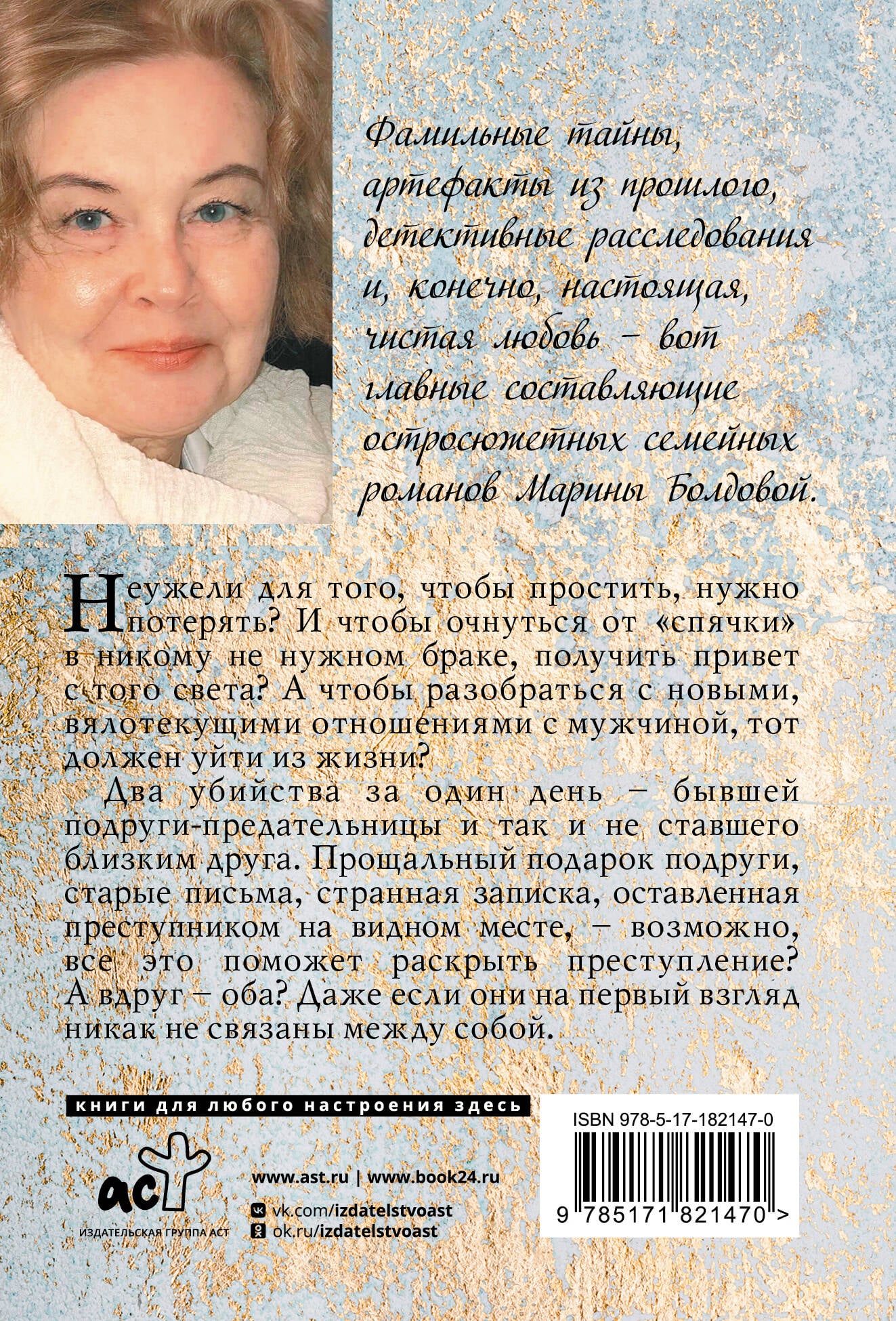 - Переиздание популярного романа в покет-формате. - От писательницы, работающей в нестандартном жанре семейного детектива. - Фамильные тайны, артефакты из прошлого, детективные расследования и, конечно, настоящая, чистая любовь - вот главные составляющие остросюжетных семейных романов Марины Болдовой. - Рекомендуем книги автора поклонникам детективов Татьяны Устиновой и Александры Марининой.