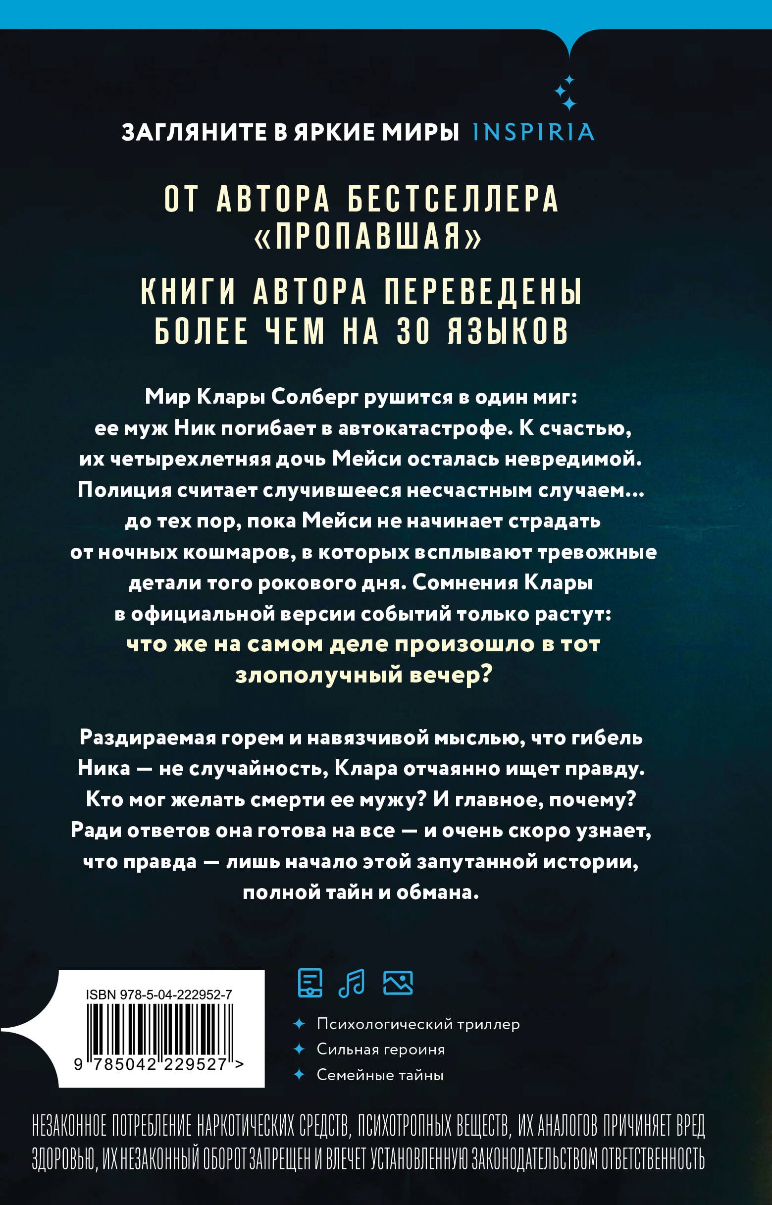 НЕЗАКОННОЕ ПОТРЕБЛЕНИЕ НАРКОТИЧЕСКИХ СРЕДСТВ, ПСИХОТРОПНЫХ ВЕЩЕСТВ, ИХ АНАЛОГОВ ПРИЧИНЯЕТ ВРЕД ЗДОРОВЬЮ, ИХ НЕЗАКОННЫЙ ОБОРОТ ЗАПРЕЩЕН И ВЛЕЧЕТ УСТАНОВЛЕННУЮ ЗАКОНОДАТЕЛЬСТВОМ ОТВЕТСТВЕННОСТЬ. ОТ АВТОРА БЕСТСЕЛЛЕРА «ПРОПАВШАЯ». КНИГИ АВТОРА ПЕРЕВЕДЕНЫ БОЛЕЕ ЧЕМ НА 30 ЯЗЫКОВ. Мир Клары Солберг рушится в один миг: ее муж Ник погибает в автокатастрофе. К счастью, их четырехлетняя дочь Мейси осталась невредимой. Полиция считает случившееся несчастным случаем… до тех пор, пока Мейси не начинает страдать от ночных кошмаров, в которых всплывают тревожные детали того рокового дня. Сомнения Клары в официальной версии событий только растут: что же на самом деле произошло в тот злополучный вечер? Раздираемая горем и навязчивой мыслью, что гибель Ника - не случайность, Клара отчаянно ищет правду. Кто мог желать смерти ее мужу? И, главное, почему? Ради ответов она готова на все. Но очень скоро узнает, что правда - лишь начало этой запутанной истории, полной тайн и обмана… _________________________________________________________ «Напряжённый, захватывающий триллер с совершенно ошеломляющими поворотами». - Нита Проуз, автор бестселлера №1 «Горничная» «Захватывающая история-головоломка и глубокий, пронзительный рассказ о горе». - Рут Уэйр, автор бестселлера The New York Times «Девушка из каюты №10» «В романе "Твоя последняя ложь" Мэри Кубица мастерски сплетает историю брака и тайн. Эта книга завораживает, пугает и удивляет неожиданными поворотами - вы не сможете оторваться до самой последней страницы, а финал останется с вами надолго». - Меган Эбботт «Блестяще, напряжённо, невероятно захватывающе. Готовьтесь испытать целый спектр эмоций!» - Б. А. Пэрис, автор бестселлера The New York Times «За закрытыми дверями» «Леденящий душу психологический триллер... Кубица снова доказывает, что она - мастер напряжения и интриги». - Publishers Weekly «Этот тревожный триллер - идеальное чтение для долгих летних вечеров». - Redbook «Четвёртый самостоятельный роман Кубицы - это захватывающий портрет горя и борьбы, рассказанный через отчаянное расследование жены, чья жизнь оказалась построена на лжи». - Booklist| Издательство | ООО "Издательство "Эксмо" |