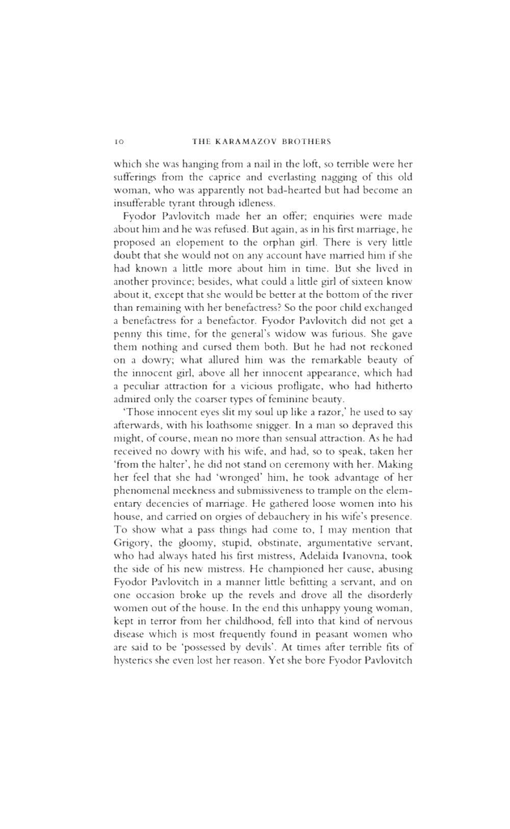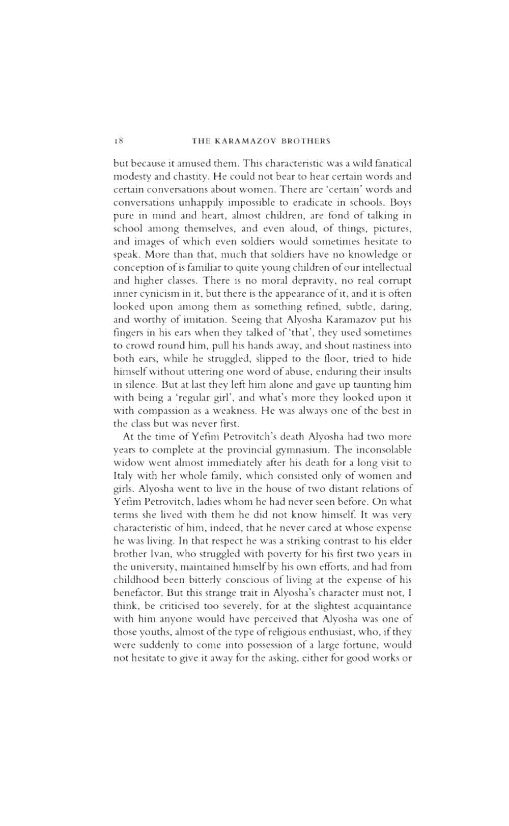 The Karamazov Brothers by Fyodor Dostoevksy(1880) is both a brilliantly told crime story and a passionate philosophical debate. The dissolute landowner Fyodor Pavlovich Karamazov is murdered; his sons-the atheist intellectual Ivan, the hot-blooded Dmitry, and the saintly novice Alyosha-are all involved at some level. Brilliantly bound up with this psychological drama is Dostoevsky's intense and disturbing exploration of many deeply felt ideas about the existence of God, freedom of will, the collective nature of guilt, and the disastrous consequences of rationalism. Filled with eloquent voices, this new translation fully realizes the power and dramatic virtuosity of Dostoevsky's most brilliant work.| Издательство | Wordsworth |