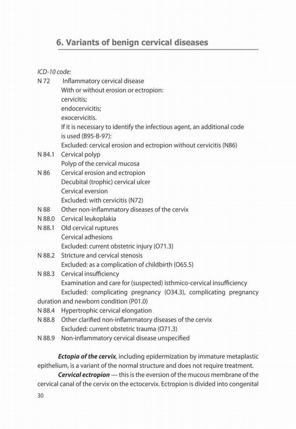 The textbook examines modern ideas about the risk factors for the development of benign, pre-cancerous diseases and cervical cancer, screening and clarifying the diagnostic methods, as well as modern options for the treatment of cervical diseases. The educational and methodical manual is intended for obstetricians and gynecologists, as well as for students in the main professional educational programs of higher education - students of medical universities, clinical residents, post-graduate students.