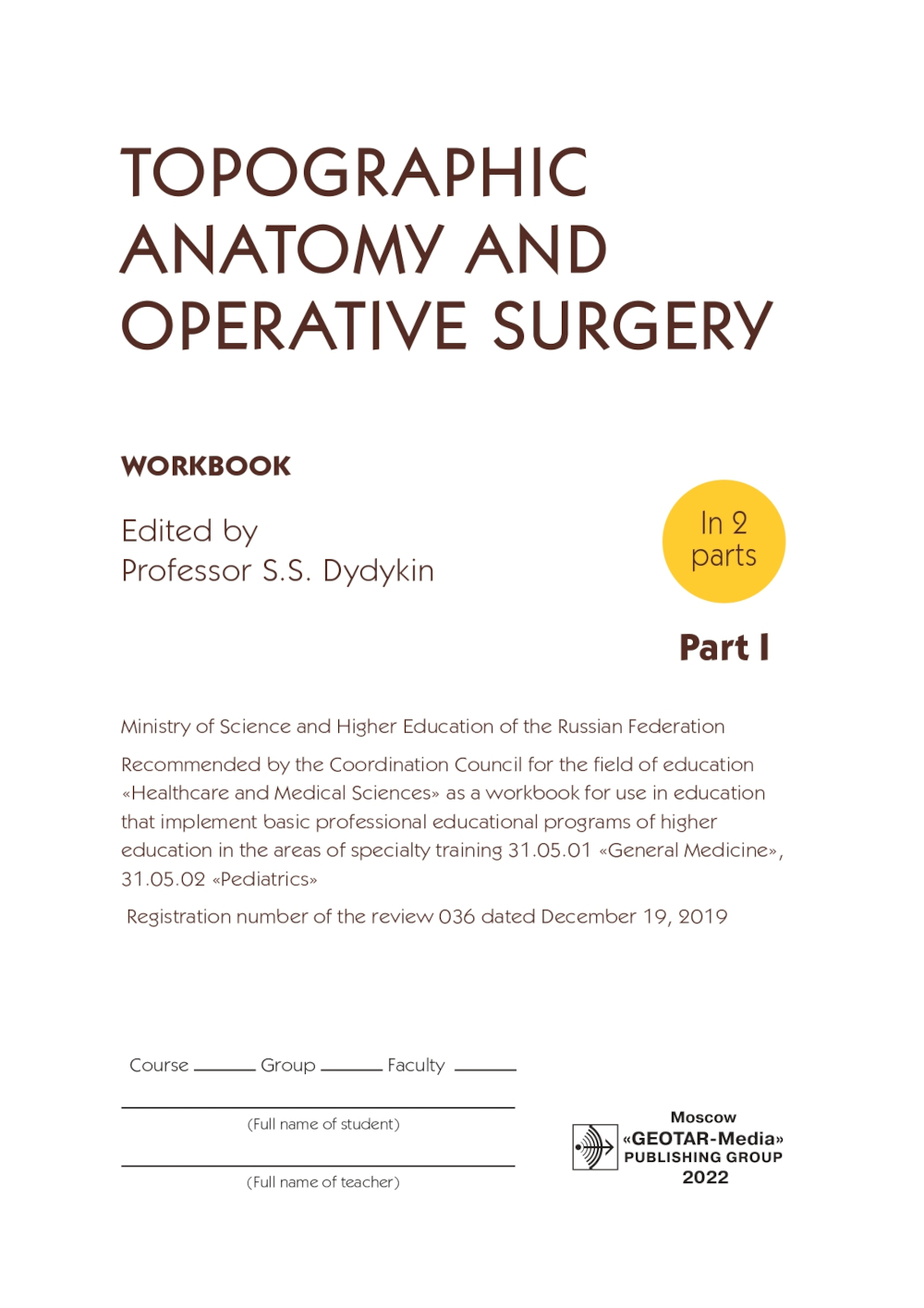 Аннотация: Topographic Anatomy and Operative Surgery. Workbook. In 2 parts. Part 1: на англ.яз