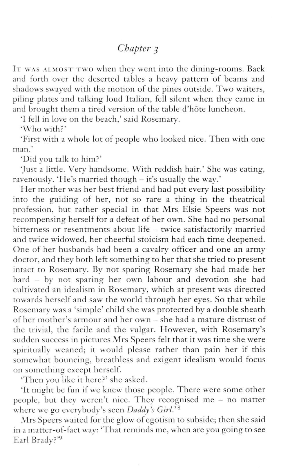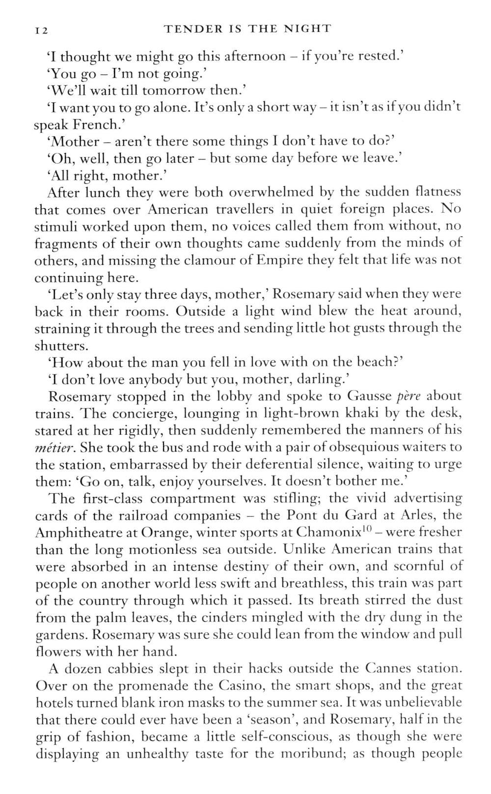 With an Introduction and Notes by Henry Claridge, Senior Lecturer, School of English, University of Kent at Canterbury. Tender is the Night is a story set in the hedonistic high society of Europe during the «Roaring Twenties». A wealthy schizophrenic, Nicole Warren, falls in love with Dick Diver - her psychiatrist. The resulting saga of the Divers' troubled marriage, and their circle of friends, includes a cast of aristocratic and beautiful people, unhappy love affairs, a duel, incest, and the problems inherent in the possession of great wealth. Despite cataloguing a maelstrom of interpersonal conflict, Tender is the Night has a poignancy and warmth that springs from the quality of Fitzgerald's writing and the tragic personal experiences on which the novel is based. Six years separate Tender is the Night and The Last Tycoon, the novel Fitzgerald left unfinished at his death in December 1940. Fitzgerald lived in Hollywood more or less continuously from July 1937 until his death, and a novel about the film industry at the height of 'the studio system' centred on the working life of a top producer was begun in 1939. Even in its incomplete state The Last Tycoon remains the greatest American novel about Hollywood and contains some of Fitzgerald's most brilliant writing.