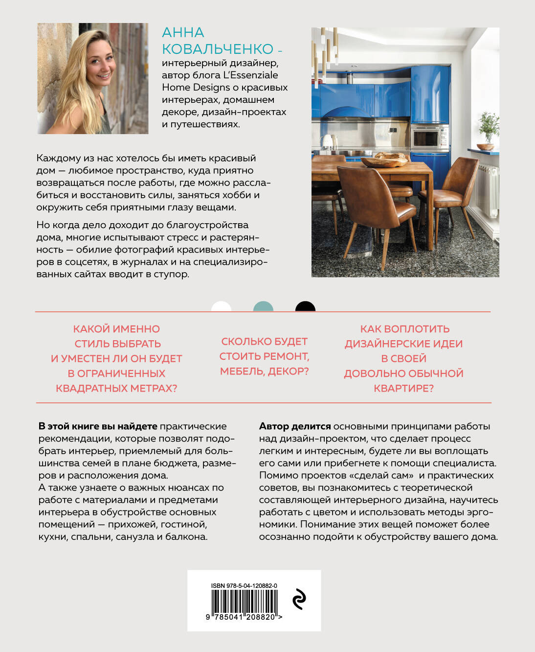 Вас вдохновляют красивые интерьеры с глянцевых страниц журналов и дизайнерские проекты на сайтах? Но каждый раз, оценивая свою обычную типовую квартиру и желая ее преобразить, впадаете в панику и стресс? Доступность информации и различных ресурсов зачастую только усугубляет проблему - обилие фотографий красивых интерьеров в соцсетях, журналах и на специализированных сайтах многих вводит в ступор. Как воплотить эти идеи? Сколько это будет стоить? Подойдет ли именно вам такой стиль? Не говоря о том, что многие интерьеры настолько оторваны от реальности большинства людей в плане бюджета, размеров и расположения дома, что красивой картинкой остается только любоваться. Книга Анны Ковальченко, интерьерного и ювелирного дизайнера, автора студии дизайна в Испании и собственного ювелирного бренда L'Essenziale Jewelry, поможет вам подойти более осознанно к обустройству своего дома. Благодаря рекомендациям автора, вы узнаете, как дизайнеры работают над проектом, об этапах его реализации и задействованных инструментах. Благодаря Интернету и различным программам и приложениям любой при желании может почувствовать себя дизайнером. В книге переплетаются практические советы и теоретические аспекты, без знания которых невозможно создать интерьер мечты. Автор затрагивает темы, которые необходимо знать каждому, кто планирует изменить свой дом: • работа с цветом; • эргономика; • этапы работы над дизайн-проектом; • материалы для отделки; • и многое другое. Книга разделена на главы, посвященные основным помещениям жилого пространства - прихожей, гостиной, кухне, спальне, санузлу и балкону. Помимо проектов «сделай сам» и практических советов, вы познакомитесь с теоретической составляющей интерьерного дизайна, который поможет вам сделать процесс благоустройства дома интересным и творческим.| Издательство | ООО "Издательство "Эксмо" |
