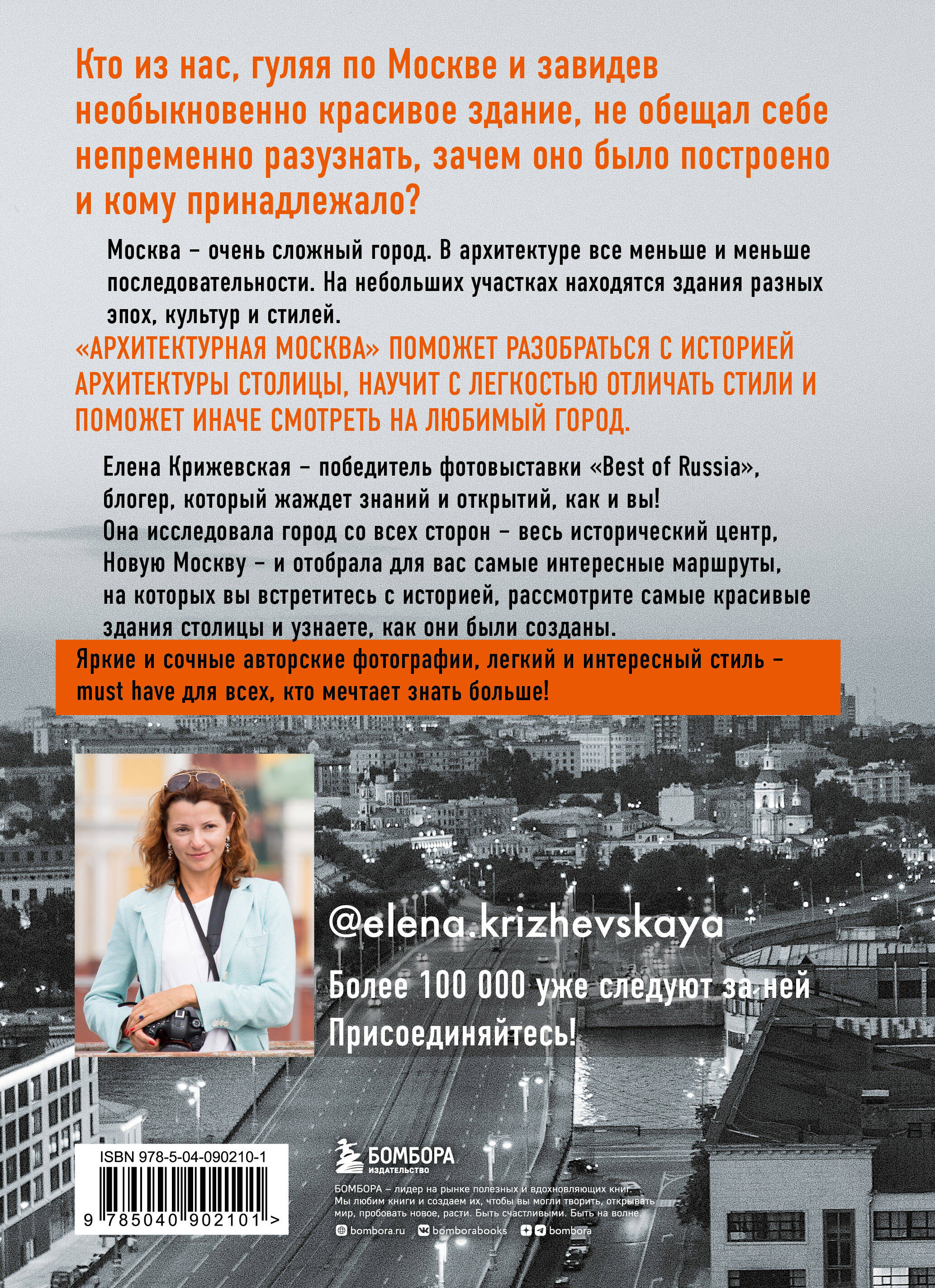 Давайте разберемся с архитектурой столицы раз и навсегда! Архитектурная Москва - это 8 прогулок, наполненных колоннами, арками, флигелями, старинной кладкой и множеством интересностей. Каждая глава посвящена одному маршруту по центру города, о котором мы так мало знаем. Вечная и древняя, технологичная и инновационная, Москва никогда не перестанет удивлять своих жителей и гостей. А наш любимый блогер Елена Крижевская подробно расскажет обо всех особенностях архитектуры зданий и парков. Каждый маршрут содержит множество великолепных авторских снимков автора (победитель Best of Russia 2016). Научный редактор книги - Игорь Волков, искусствовед и научный сотрудник Мультимедиа Арт Музея. Книга станет отличным подарком как тем, кто отлично подкован в истории и архитектуре Москвы, так и тем, кто только начинает свое знакомство со столицей.| Издательство | ООО "Издательство "Эксмо" |