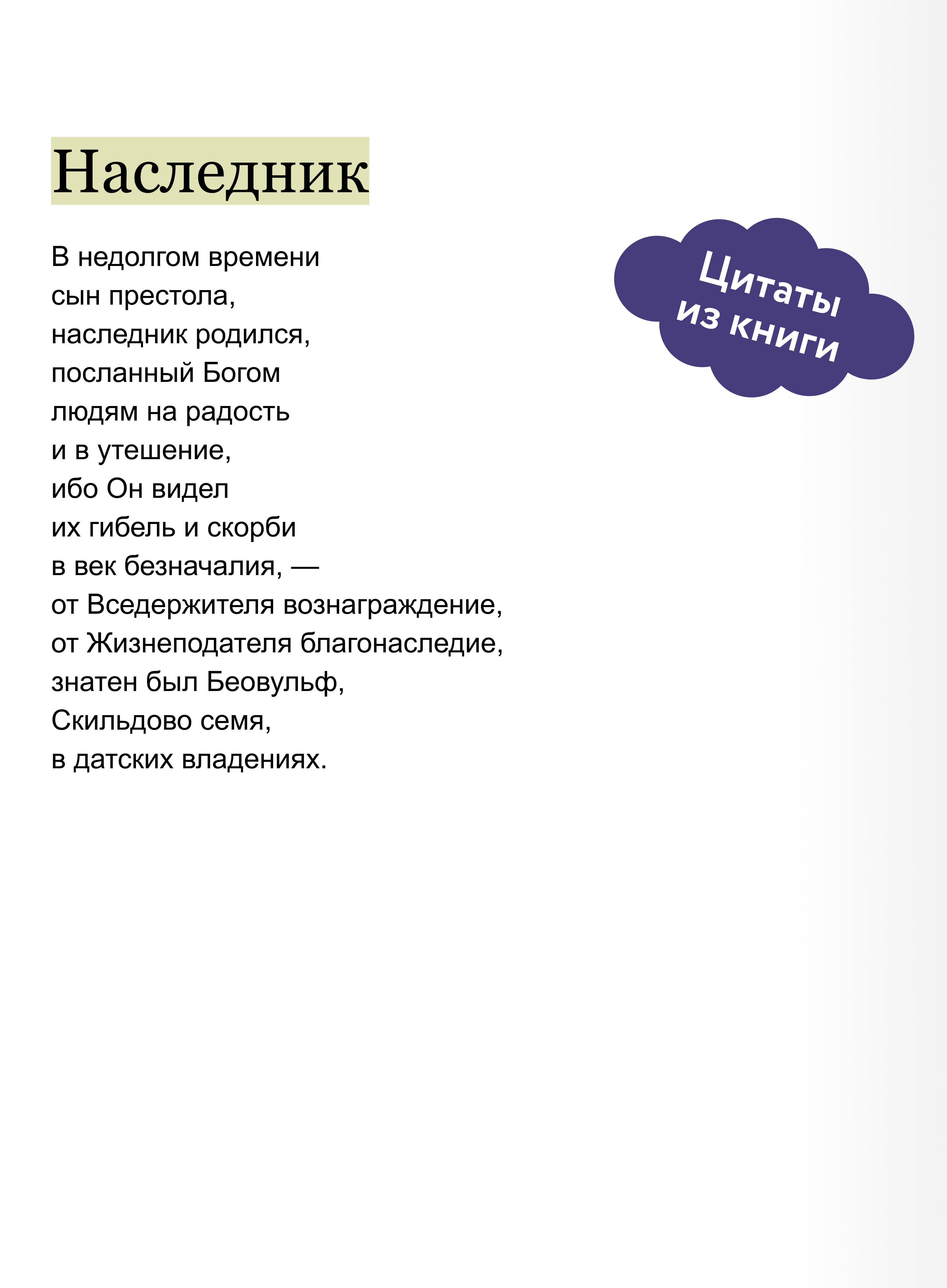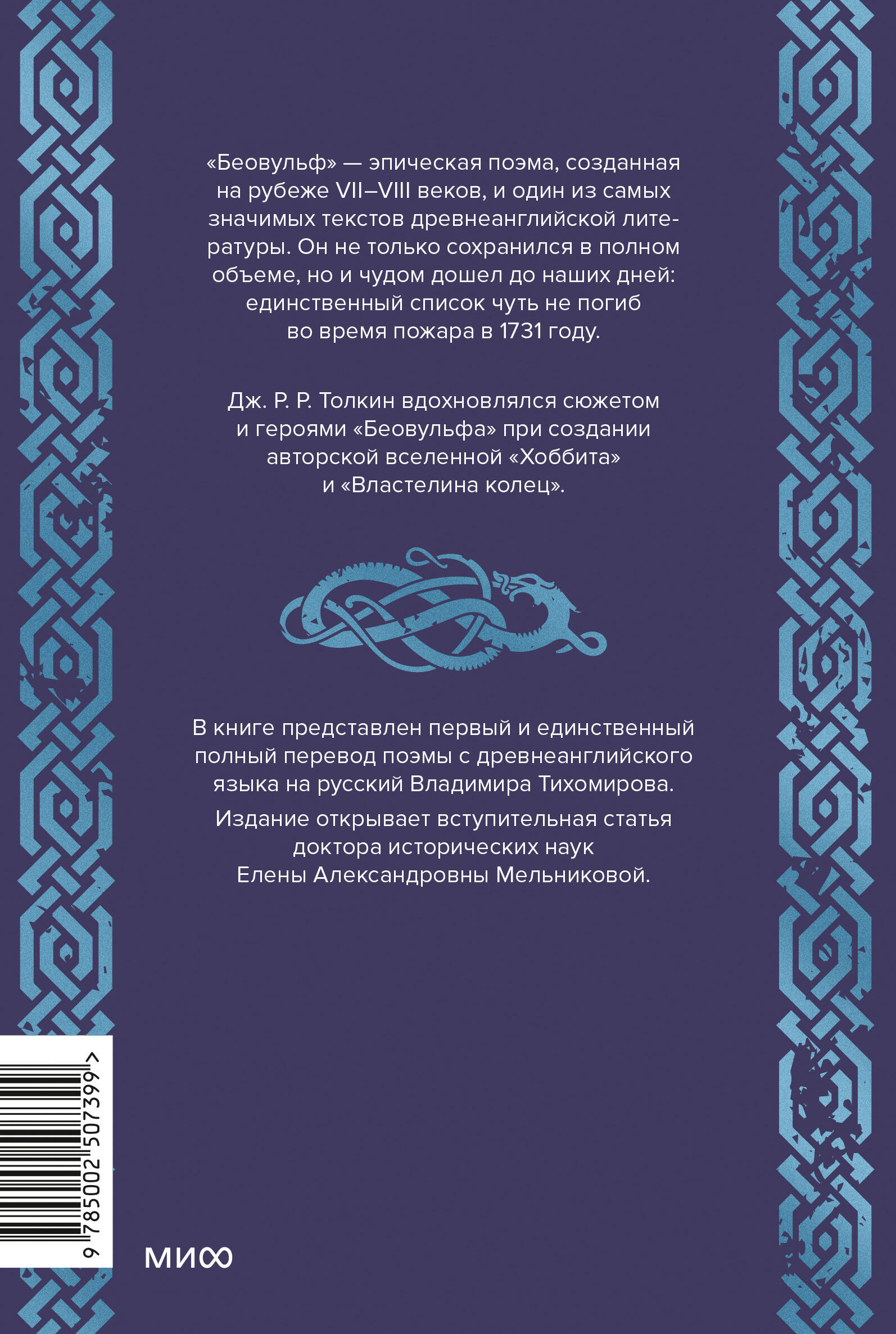 "Беовульф" - эпическая поэма, созданная на рубеже VII-VIII веков, и один из самых значимых текстов древнеанглийской литературы. Он не только сохранился в полном объеме, но и чудом дошел до наших дней: единственный список чуть не погиб во время пожара в 1731 году. Дж. Р. Р. Толкин вдохновлялся сюжетом и героями "Беовульфа" при создании авторской вселенной "Хоббита" и "Властелина колец". В книге представлен первый и единственный полный перевод поэмы с древнеанглийского Владимира Тихомирова. Издание открывает вступительная статья доктора исторических наук Елены Александровны Мельниковой.| Издательство | МИФ ООО |