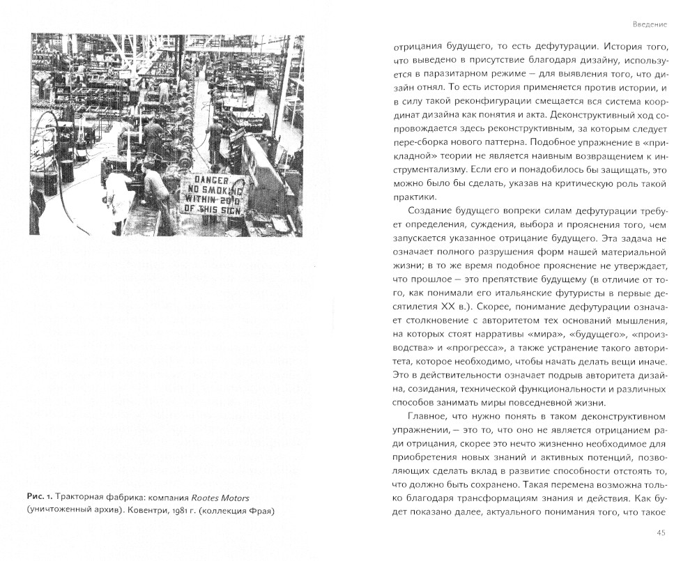 В работе известного философа и теоретика дизайна Тони Фрая «Дефутурация: новая философия дизайна», впервые опубликованной в 1999 году, но обращенной к вопросам дизайна и мира, которые, несмотря на их неотложность, и сейчас еще только-только начинают осознаваться, предпринимается попытка создать то, что сам автор называет «новым основанием мышления и практики» дизайна и мира, основу «новой повестки мышления, созидания и жизни». Это основание и повестка касаются того, способны ли мы - и если да, то насколько - на мышление, намеренное действовать хорошо, относительно возможностей имманентной неминуемой катастрофы того, что есть.