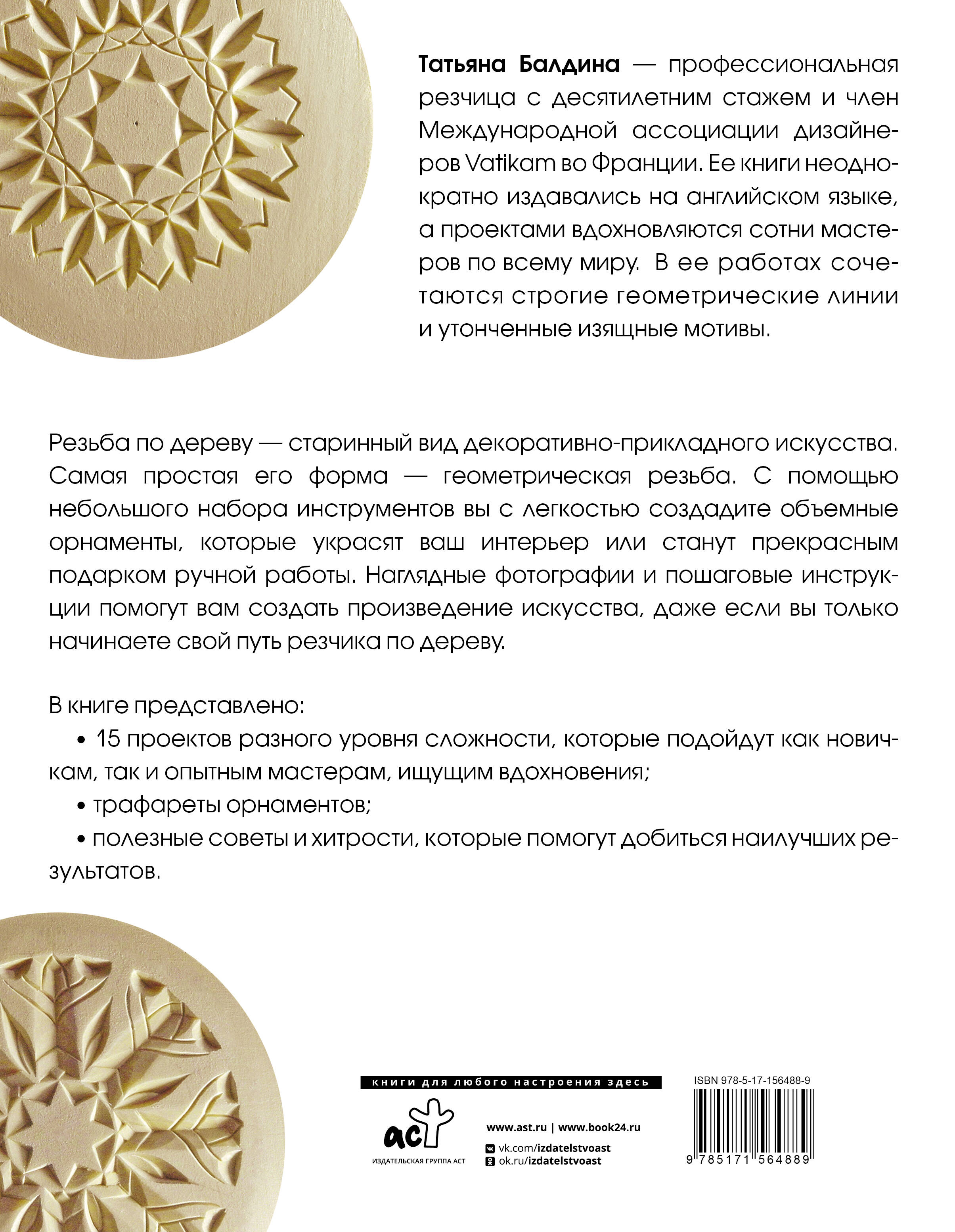 Резьба по дереву - удивительное искусство, позволяющее создавать красивые и уникальные узоры на деревянных поверхностях. Книга "Резьба по дереву. Геометрические узоры" - идеальное руководство для всех, кто хочет освоить эту оригинальную технику. В книге представлены подробные инструкции и иллюстрации, благодаря которым вы научитесь создавать неповторимые изделия из дерева. Откройте для себя новые возможности для самовыражения и творчества!