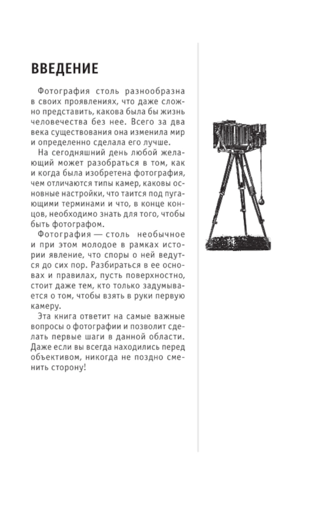 Искусство фотографии - удивительное и относительно молодое явление в истории человечества, быстро снискавшее всеобщую популярность. Неиссякаемый источник споров и дискуссий, фотография с первых же опытов захватила исследователей, как теперь захватывает соцсети. Если вы только начинаете знакомиться с техникой фотографии, вы скорее всего столкнетесь с массой вопросов. Что выбрать: пленочную камеру или цифровой фотоаппарат? Как правильно хранить фотографии? Как избежать досадных ошибок? Какой жанр выбрать? Эта книга ответит на эти и другие важные вопросы о фотографии и поможет сделать первые шаги в фотосъемке.| Издательство | Эксмо |