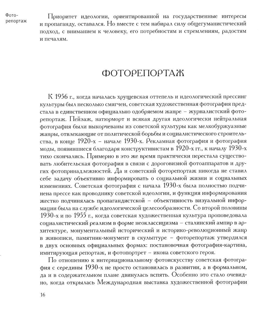 Книга «Советская фотография: 1956-1986» - первая попытка систематически изложить историю советской фотографии от послесталинского периода вплоть до перестройки. Автор выделяет три этапа - 1956-1962, 1963-1968, 1969-1986, в каждом из которых прослеживает формирование и развитие трех видов фотографии - фоторепортаж, клубная фотография и фотоандеграунд. Каждый исторический этап проанализирован с точки зрения социокультурной ситуации в стране. Также здесь рассмотрено творчество наиболее ярких фотографов выделенных периодов. В общей сложности книга содержит творческие биографии 105 советских фотографов. Издание адресовано широкому кругу читателей, интересующихся фотографией и историей отечественной культуры.