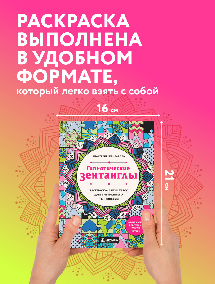 Аннотация: Гипнотические Зентанглы. Раскраска-антистресс для внутреннего равновесия