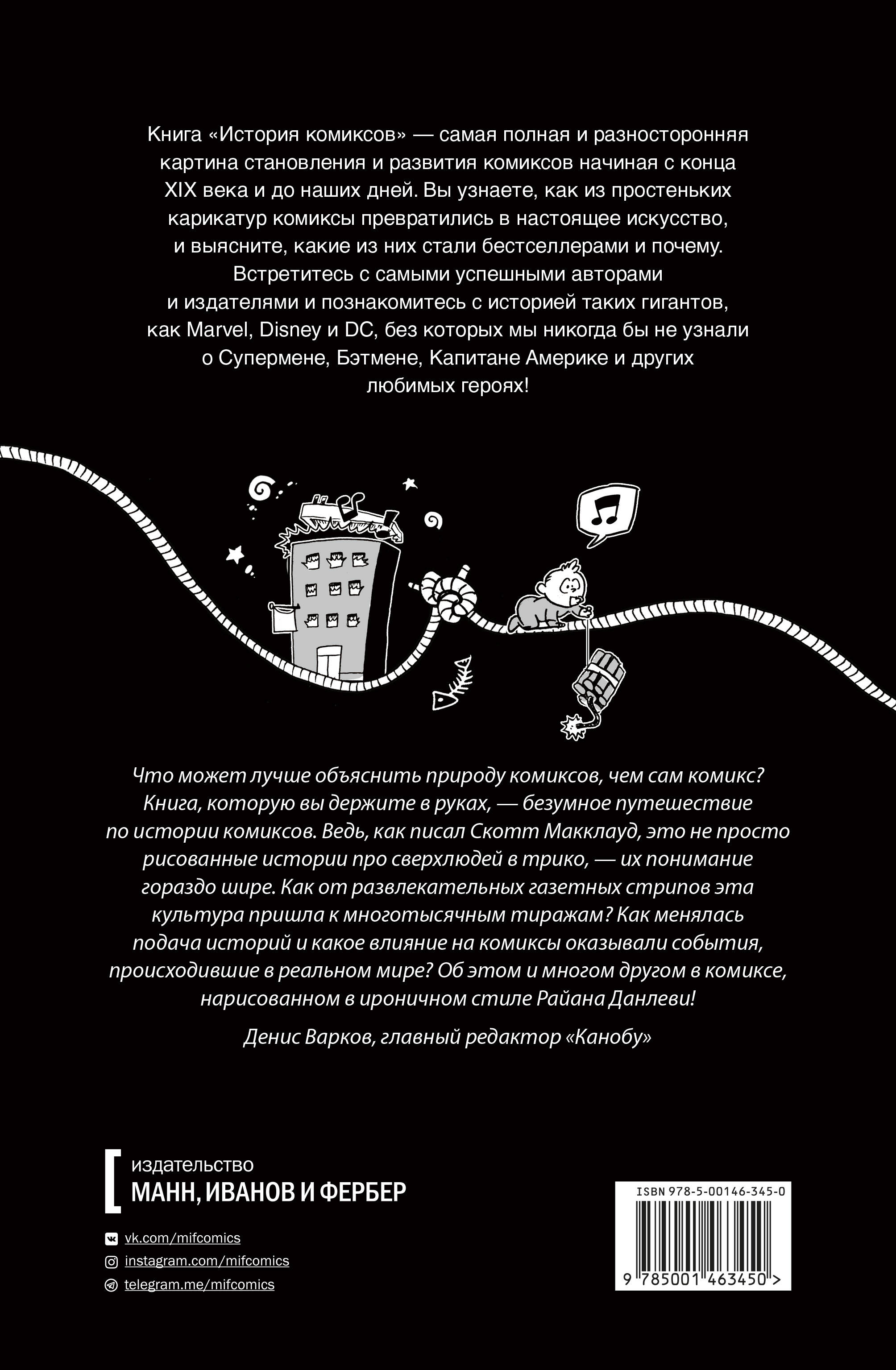 "История комиксов" - подробная картина становления и развития комиксов начиная с конца XIX века и до наших дней. Вы узнаете, как из карикатур комиксы превратились в настоящее искусство, и выясните, какие из них стали бестселлерами и почему.| Издательство | МАНН, ИВАНОВ И ФЕРБЕР ООО |