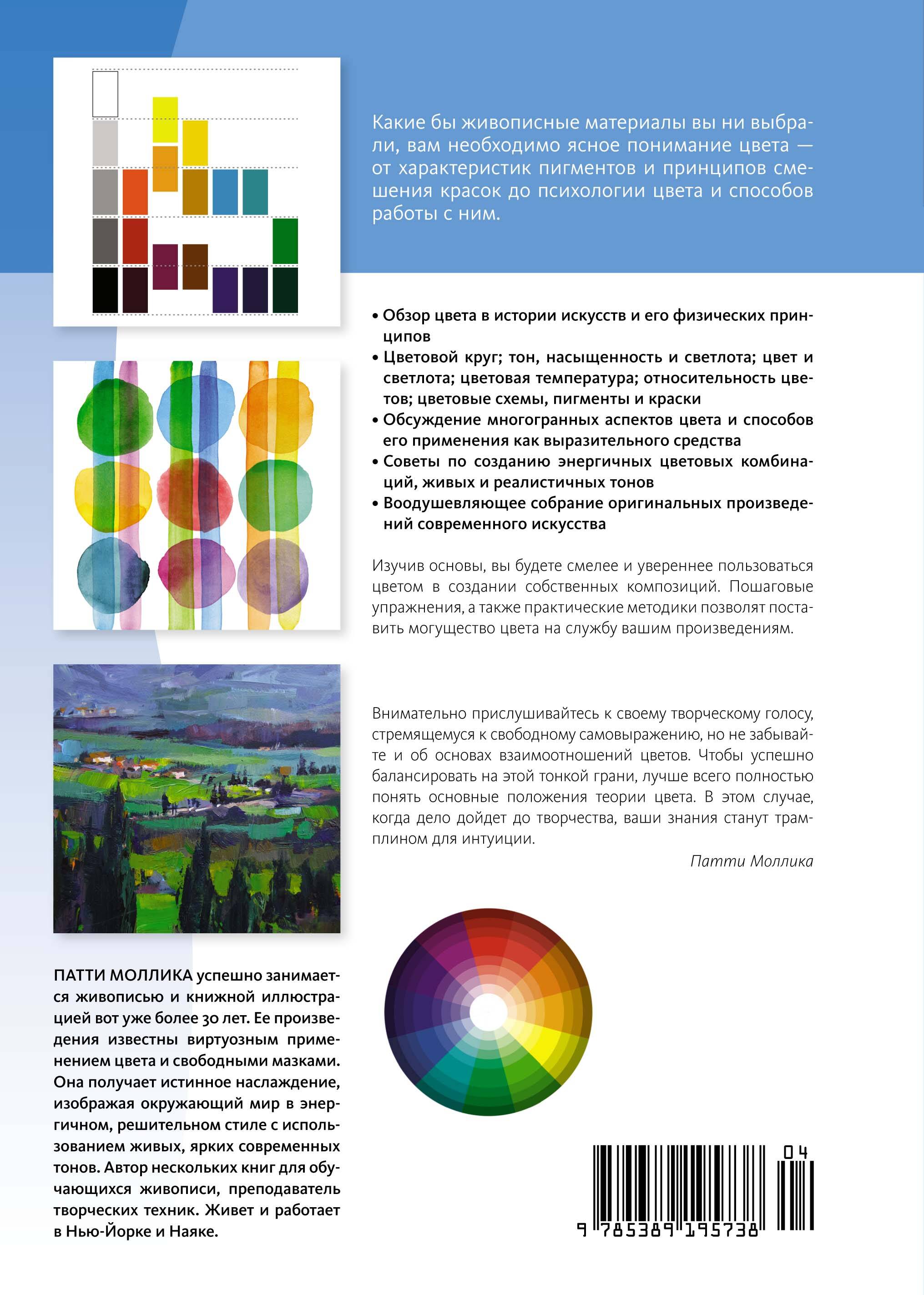 В книге рассказывается о самых важных аспектах теории цвета в приложении к живописи. Здесь вы найдете всю информацию, которая нужна, чтобы в ваших произведениях были реализованы динамические, гармоничные и продуманные цветовые решения. "Представить нашу жизнь без цвета невозможно, но что такое цвет? Как именно мы понимаем его, организуем и используем его силу так, чтобы он помогал нам в творчестве, общении и самовыражении? Я ставлю своей задачей познакомить читателя с концепциями теории цвета и подробно рассмотреть их, и в частности в приложении к живописи маслом и акрилом. Мы обсудим широкий круг полезных тем, которые, несомненно, позволят вам выйти на новый уровень понимания цвета - от свойств электромагнитного спектра до пигментов, цветовых схем и психологии цветовосприятия. Чем больше вы будете знать об организации и смешении цветов, тем лучше будете подготовлены к достижению ваших творческих целей. Давайте же погрузимся в мир цвета и изучим это поразительное явление!" (Патти Моллика)