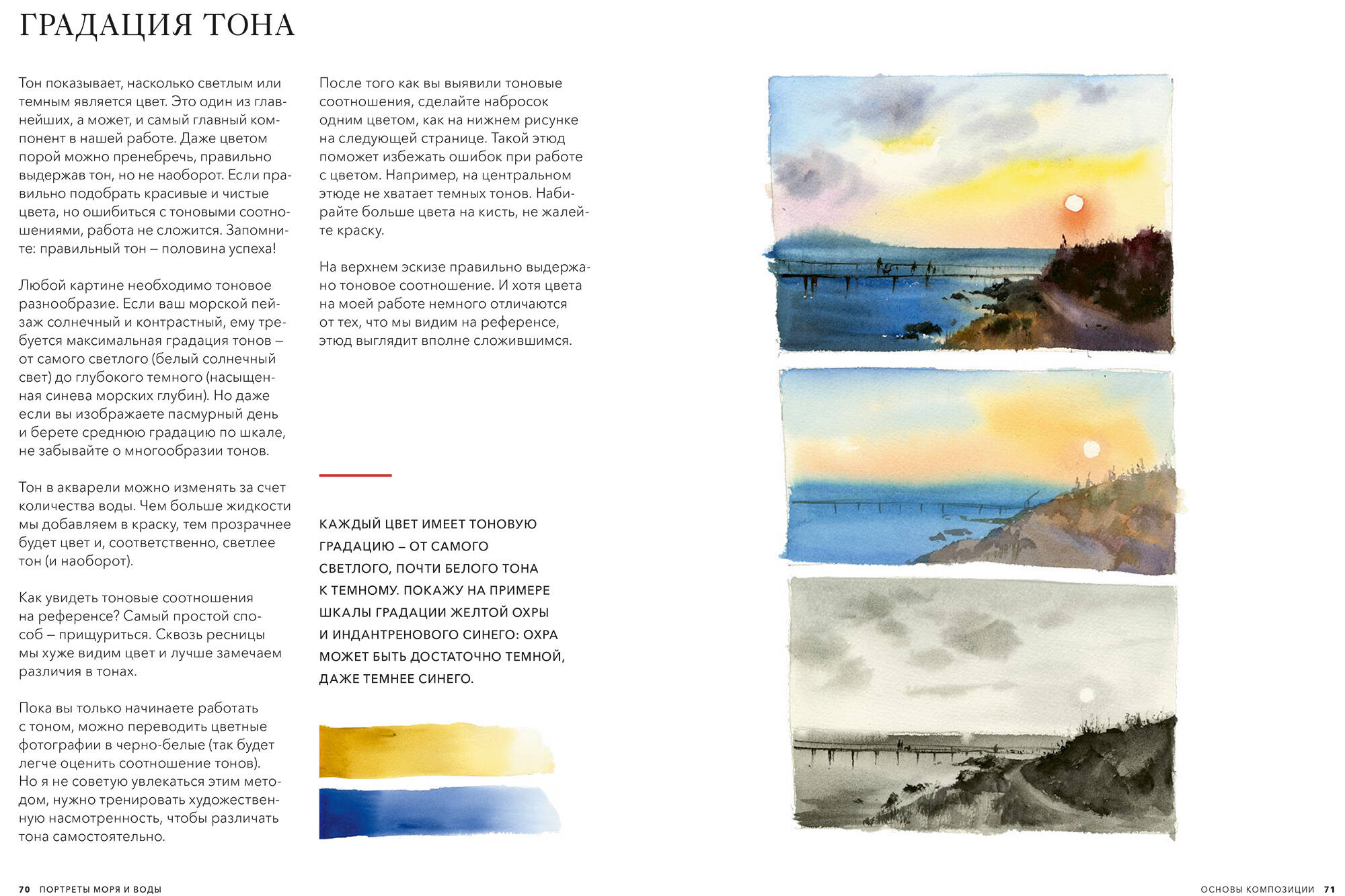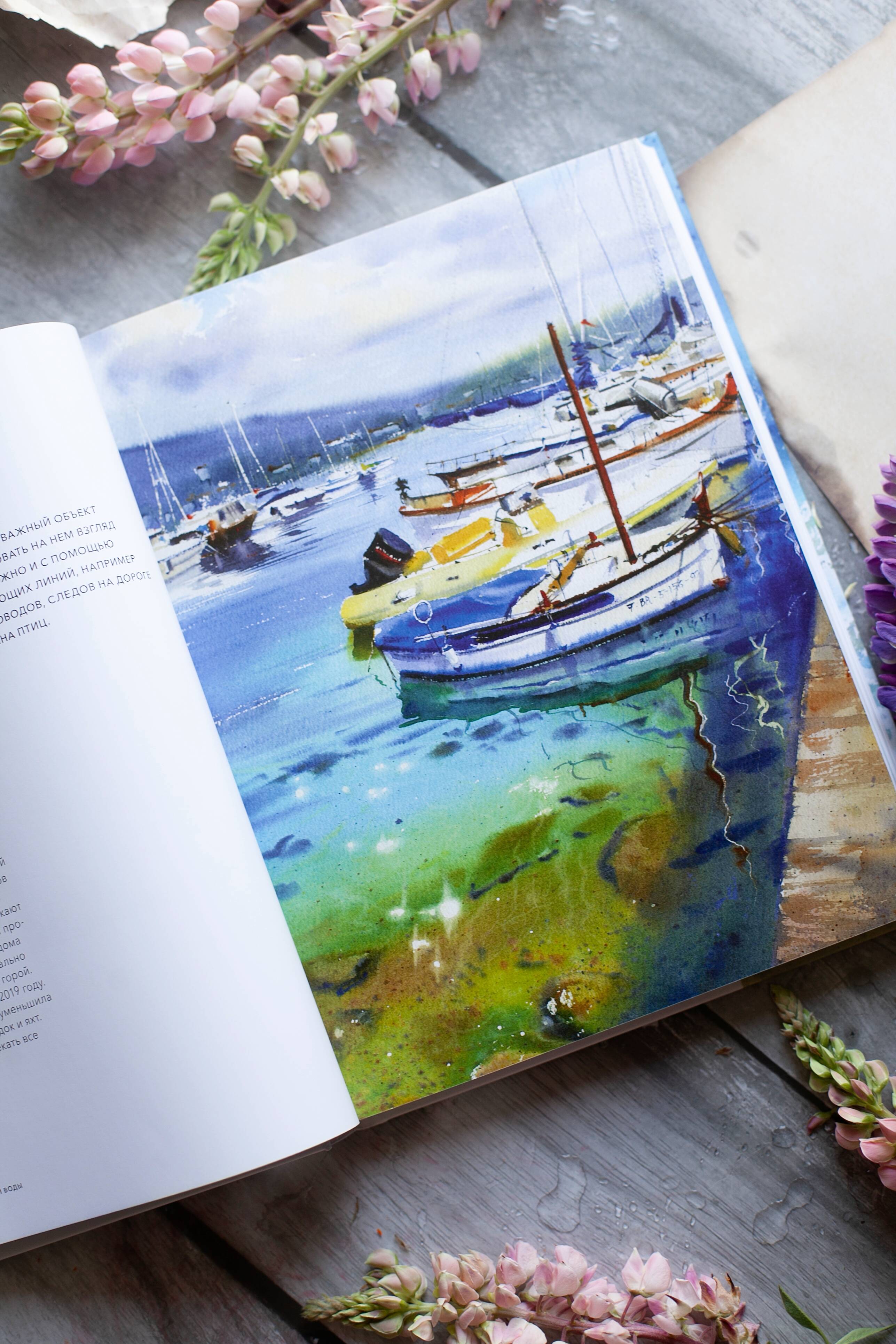 Книга о том, как с помощью акварели создавать впечатляющие водные пейзажи за счет проработки нюансов: отражений и бликов на водной глади, разнообразия цветов и оттенков. Рисовать воду сложно. Об этом говорят даже опытные художники. Но благодаря книге Евгении Горбачевой и начинающие акварелисты смогут изобразить реалистичные водные пейзажи. Под обложкой - подробная информация о материалах (красках, кистях, бумаге), основы построения композиции, линейная и воздушная перспектива. А еще пошаговые уроки в порядке усложнения: вы научитесь рисовать солнечное побережье, подводный мир, бушующие волны, уютные приморские улочки и многое другое. Понравится и новичкам, и продолжающим. Акварель не только дарит радость творчества. Она дает возможность путешествовать, выходить за пределы повседневности. Откройте эту книгу, чтобы обрести чувство спокойствия и ощутить особую атмосферу южных морей. Для кого эта книга: Для начинающих акварелистов, которые хотят вырваться из повседневности и научиться рисовать вдохновляющие морские пейзажи. От автора: Эту книгу я задумывала как приятную прогулку - вы сможете ощутить легчайшее дуновение свежего морского бриза, который принесет невероятное чувство свободы. Нырнете с аквалангом к красочному рифу и прикоснетесь к бархатистым камням. Отправитесь на прогулку по улочкам Кипра, залитым солнечным светом. Выйдете в открытое море под парусом, проводите закат и встретите рассвет на побережье. Всё это подарит вам мир акварели. Часто от того, как мы настроимся на будущую поездку,зависит ее результат, а также то, какие впечатления получим и сколько красивых фотографий привезем. Наш акварельный круиз не станет исключением. Сначала изучим теорию. Впрочем, я изложу ее лаконично и понятно, избегая сложных терминов, - в книге вы найдете необходимые базовые знания. Усвоив их, вы с легкостью сможете погрузиться в волшебный мир акварели и будете с наслаждением создавать картины. И не бойтесь неудач - это путь к совершенствованию мастерства и оттачиванию техники. С каждой новой работой вы будете развивать свой стиль, расти в профессиональном отношении и получать все большее удовольствие от процесса.| Издательство | МАНН, ИВАНОВ И ФЕРБЕР ООО |