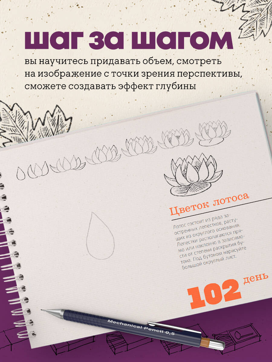 Основы рисования за 365 дней! Удобное пособие для художников любого уровня. Книга научит рисовать разных персонажей, растения, животных, предметы, транспортные средства, здания и многое другое. Книга для тех, кто хочет научиться рисовать. Фишки книги Пошаговые инструкции на каждый день. Удобный для рисования формат. Альбомный формат на навивке, которая позволит практиковаться прямо в книге, не отвлекаясь на поиск удобной поверхности для рисования. Пошаговые инструкции, благодаря которым абсолютно каждый сможет начать рисовать.| Издательство | ООО "Издательство "Эксмо" |